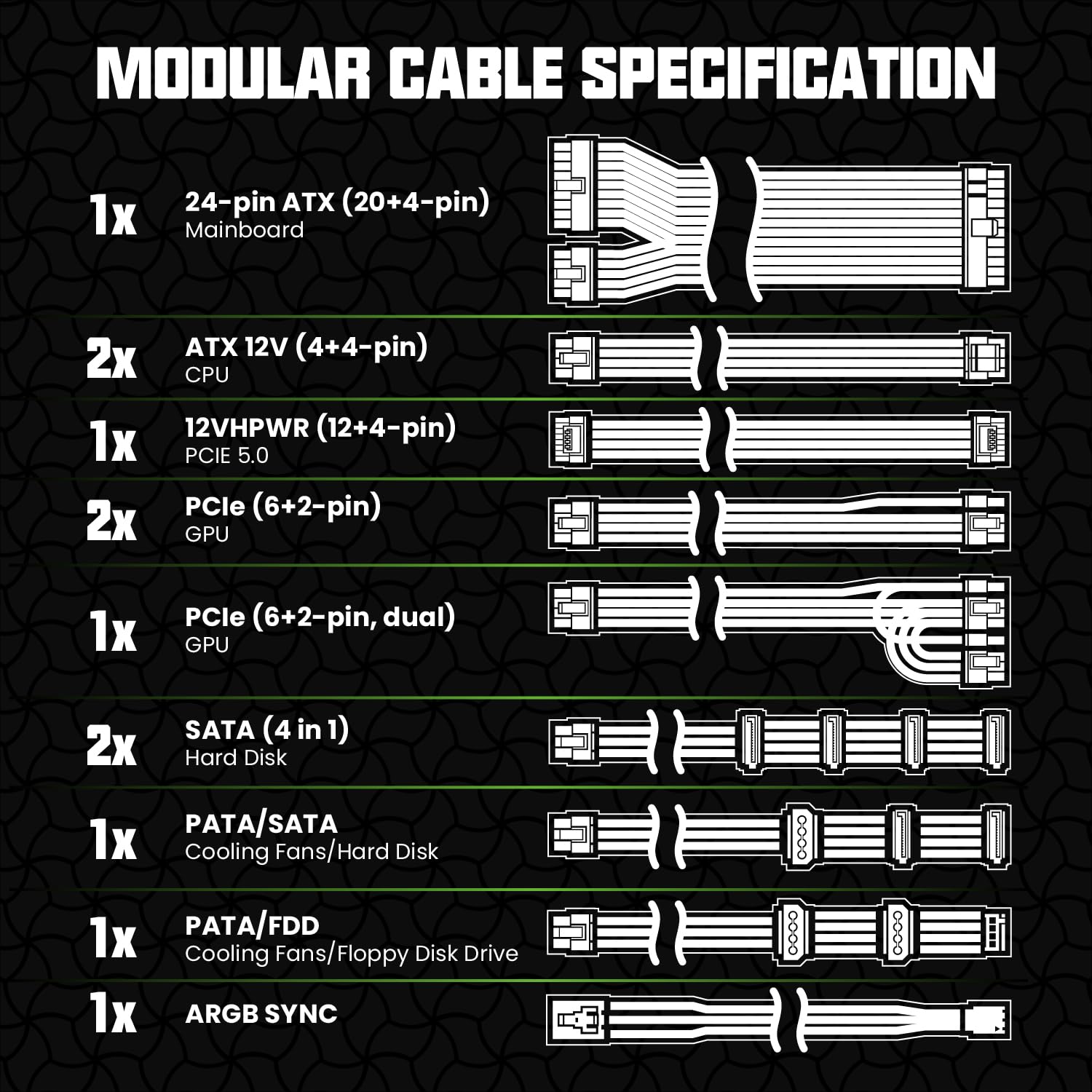 - Fully modular: Fully modular with all black flat cables, improve airflow and strengthen cable management.