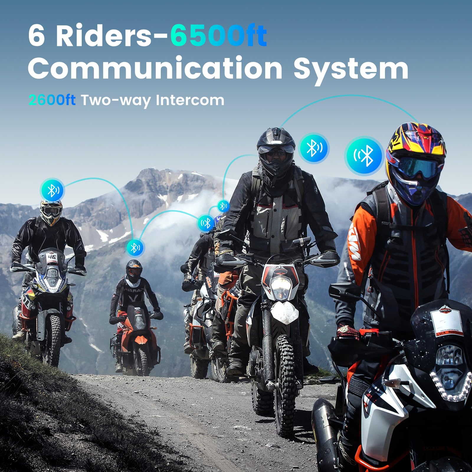 - ๐ต๐๏ธใ๐-๐๐ข๐๐๐ซ๐ฌ ๐๐๐๐๐ ๐ญ ๐๐ซ๐จ๐ฎ๐ฉ ๐๐ง๐ญ๐๐ซ๐๐จ๐ฆใThis motorcycle helmet communication system is equipped with the latest Qualcomm 5.2 Bluetooth chip, which provides higher compatibility and faster, more stable connections, and it supports interconnection with third-party brands.It can support up to 6 riders for clear intercom communication within a maximum range of 6500 feets.When two way are connected, the communication distance can reach up to 2600 feets.