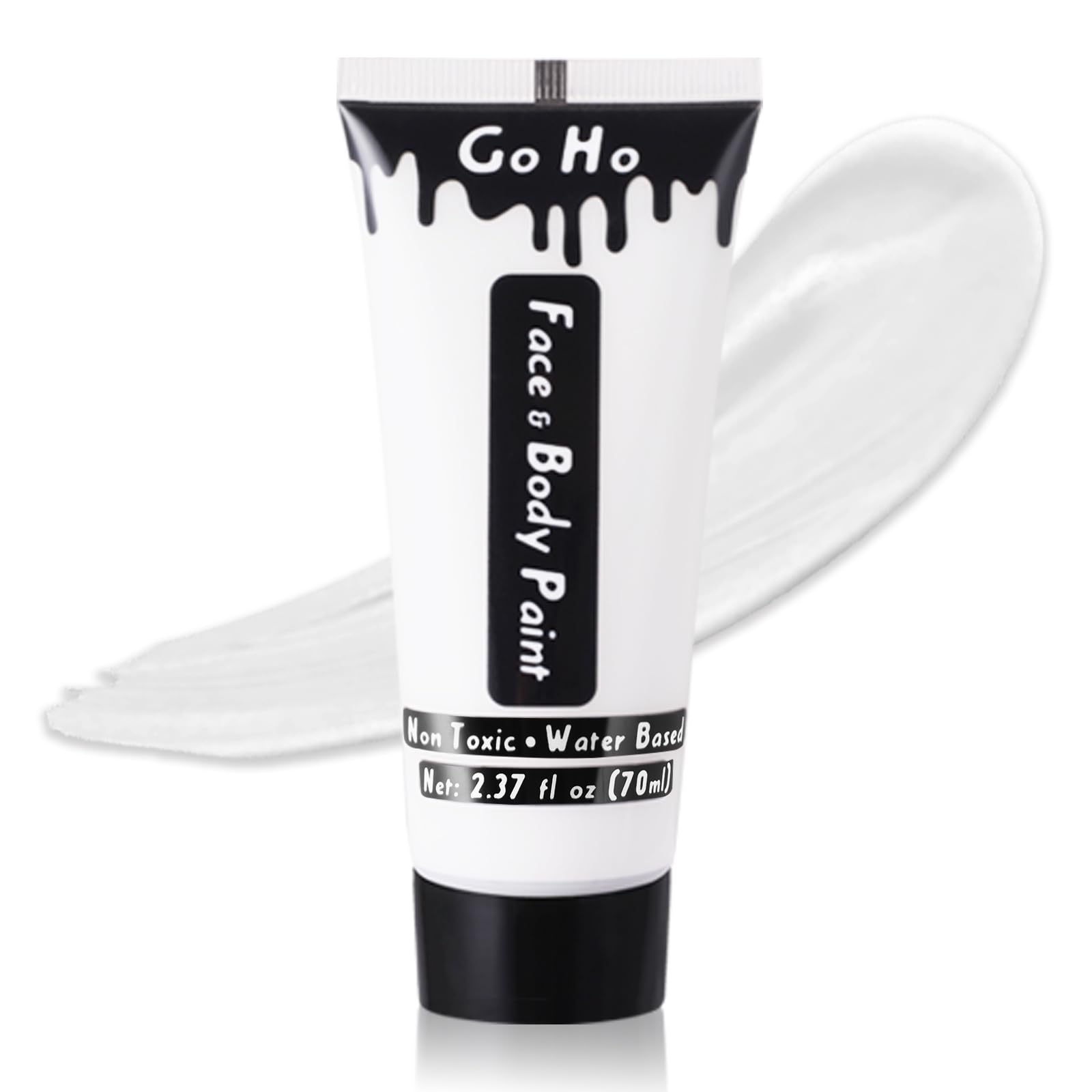Go Ho Professional Clown White Face Body Paint Washable(2.37oz),Water Based Cream White Body Paint,Halloween Costumes Cosplay SFX Goth Skeleton Zombie Vampire Clown White Makeup