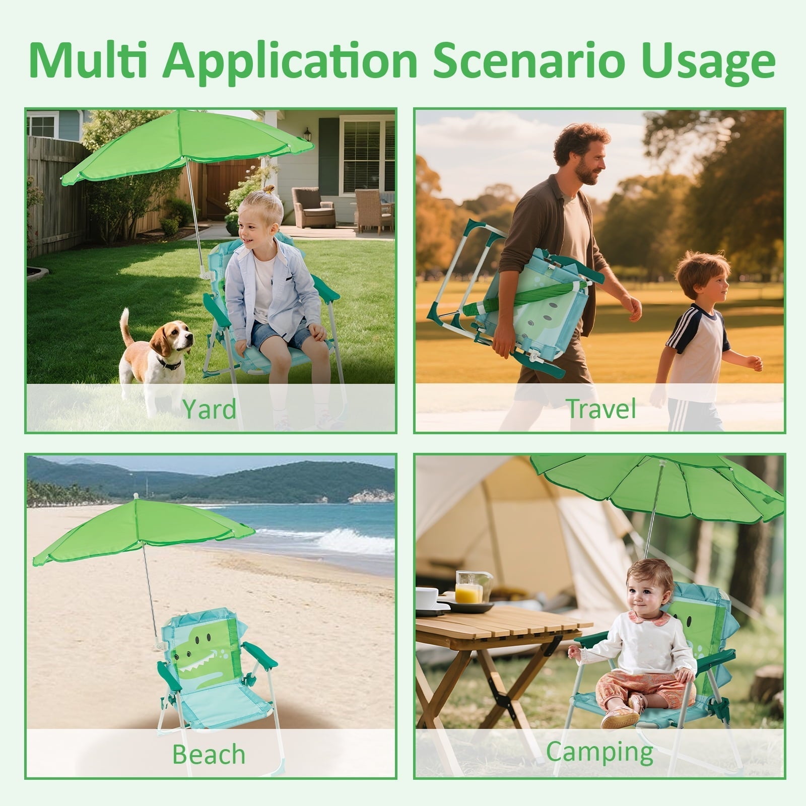 Grusce Kids Beach Chair with Sun Umbrella, Cute Animal Portable Folding Camping Chair, 40kg Capacity for Beach Outdoor Camping Picnic