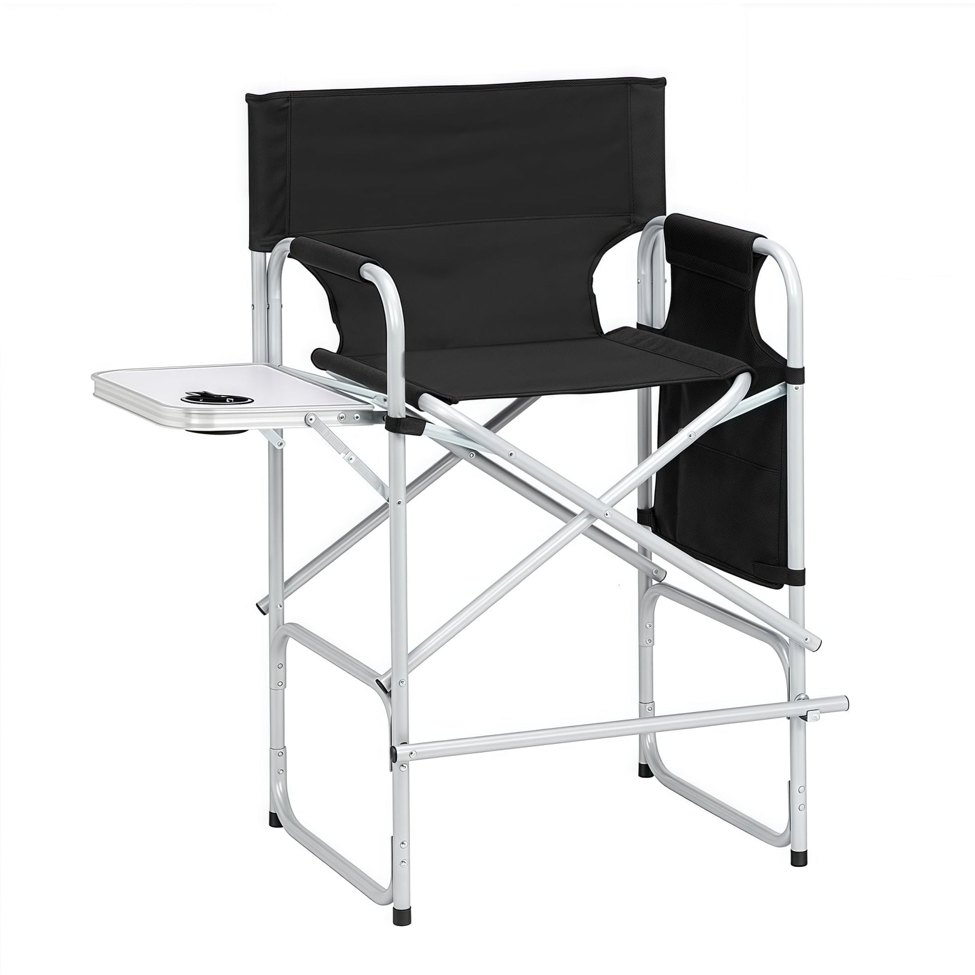 Gundir Tall Director Chair, Adult, Folding Camping Chair with Side Table, Cup Holder and Storage Bags