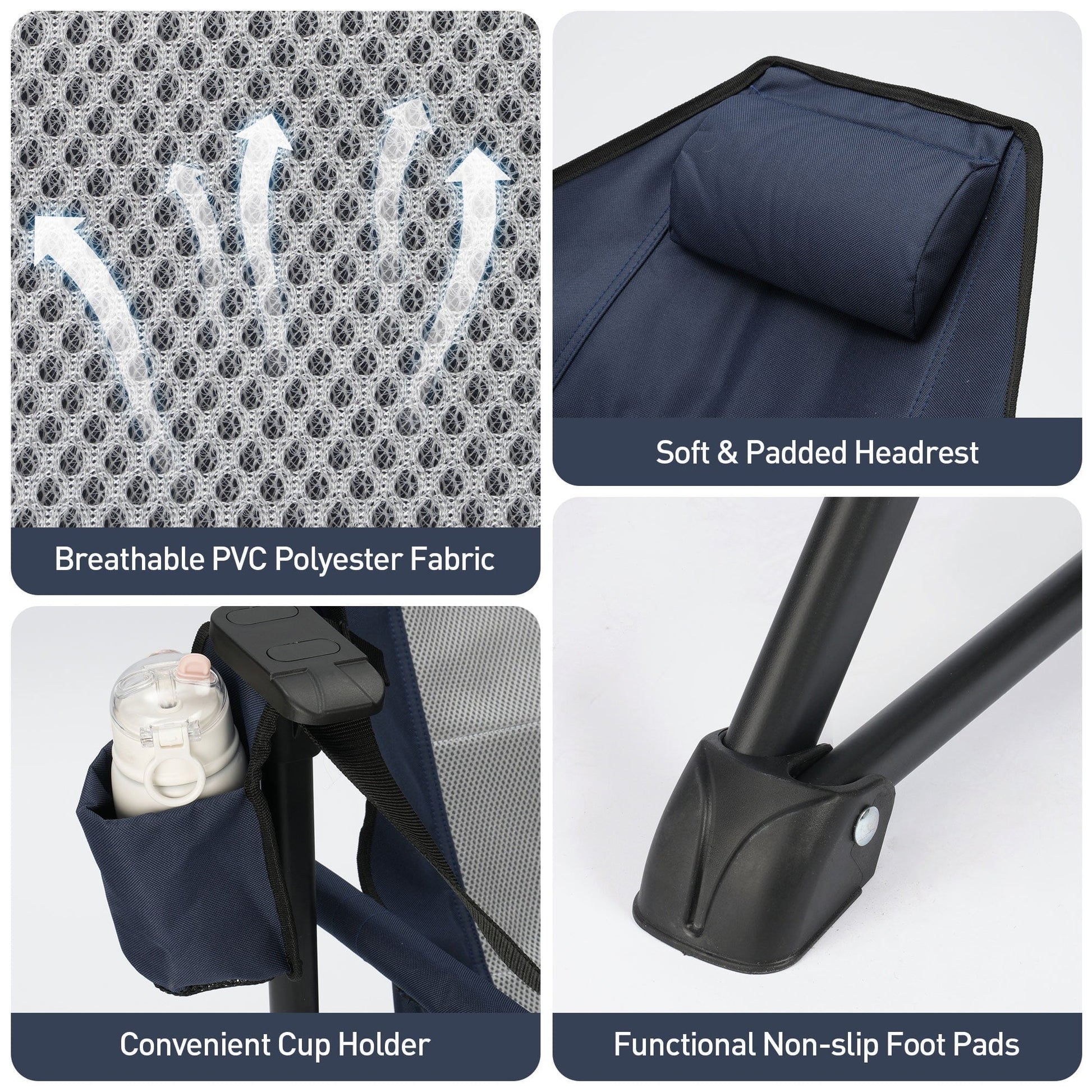 Heavy Duty 350lbs Portable Folding Camping Chair w/Adjustable Backrest & Retractable Footrest - Compact Outdoor Lawn Chair with Headrest, Cup Holder for Camping, Fishing, Hiking, Backyard