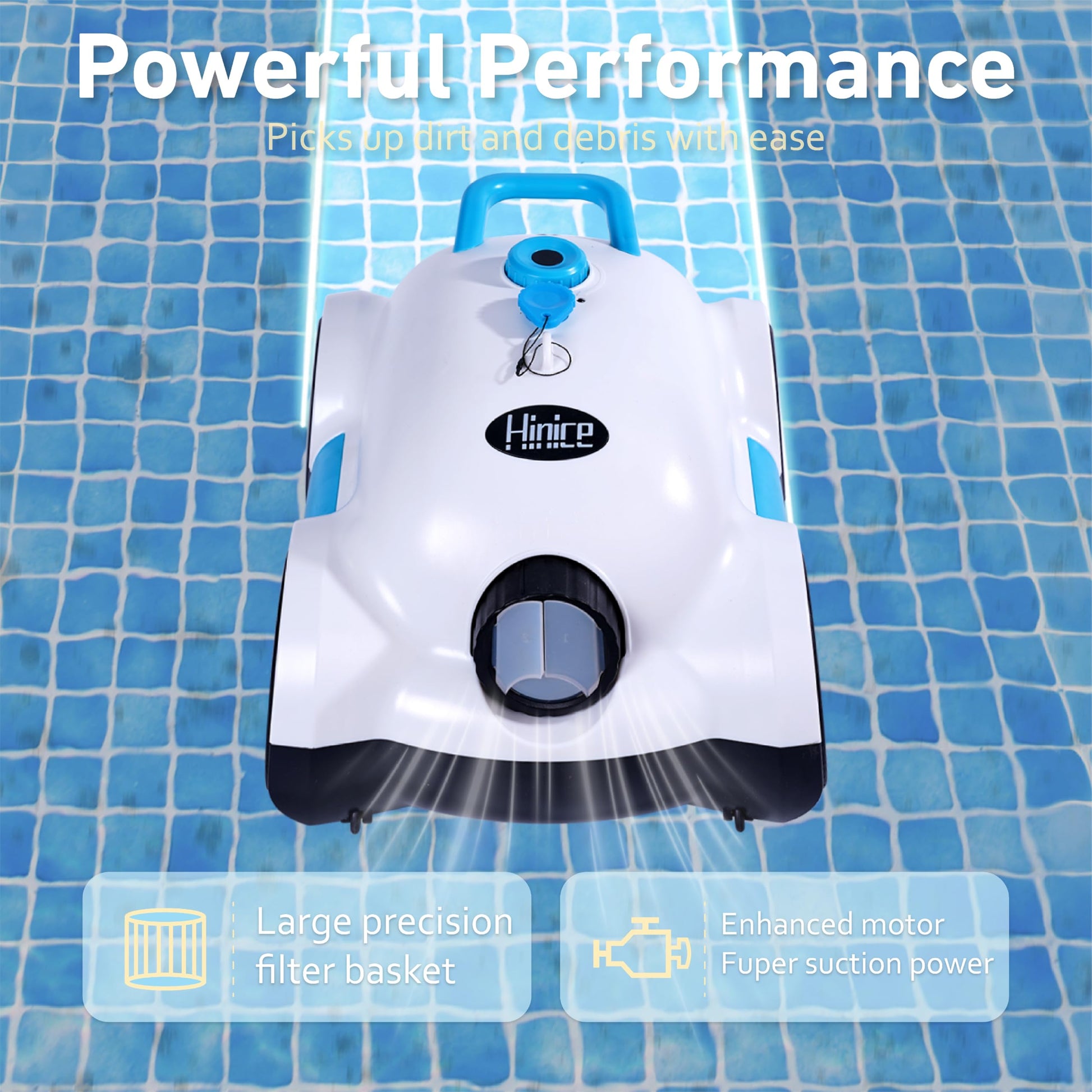 - Powerful Performance, Deep Cleaning Powered by a 40W high-efficiency motor, it drives dual brushes to strongly absorb sand, leaves, and tiny particles from the pool floor. Combined with a dual-layer precision filter, filtration efficiency is improved by 50%.