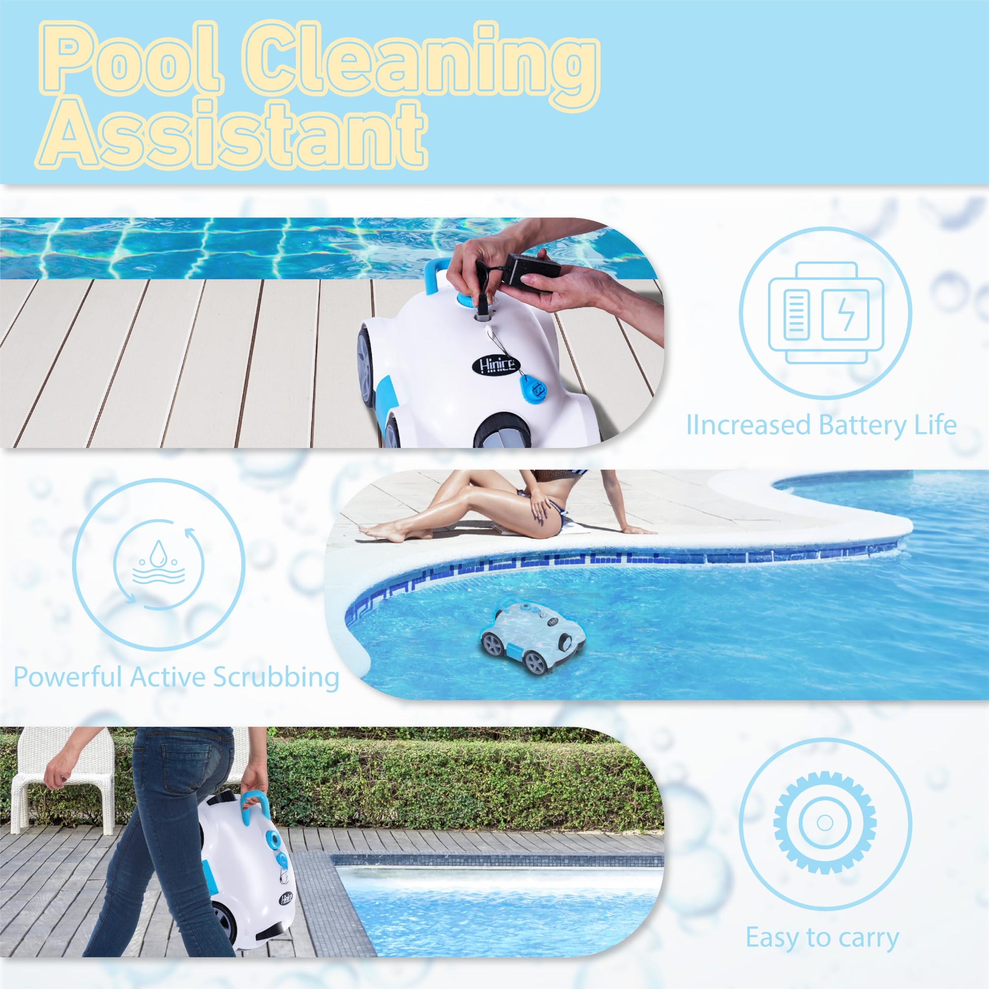 Hinice Cordless Robotic Pool Cleaner,Automatic Pool Vacuum Robot for In-Ground/Above Ground Pools,150 Min Runtime, IPX8 Waterproof, 2200 Sq Ft Coverage (White)