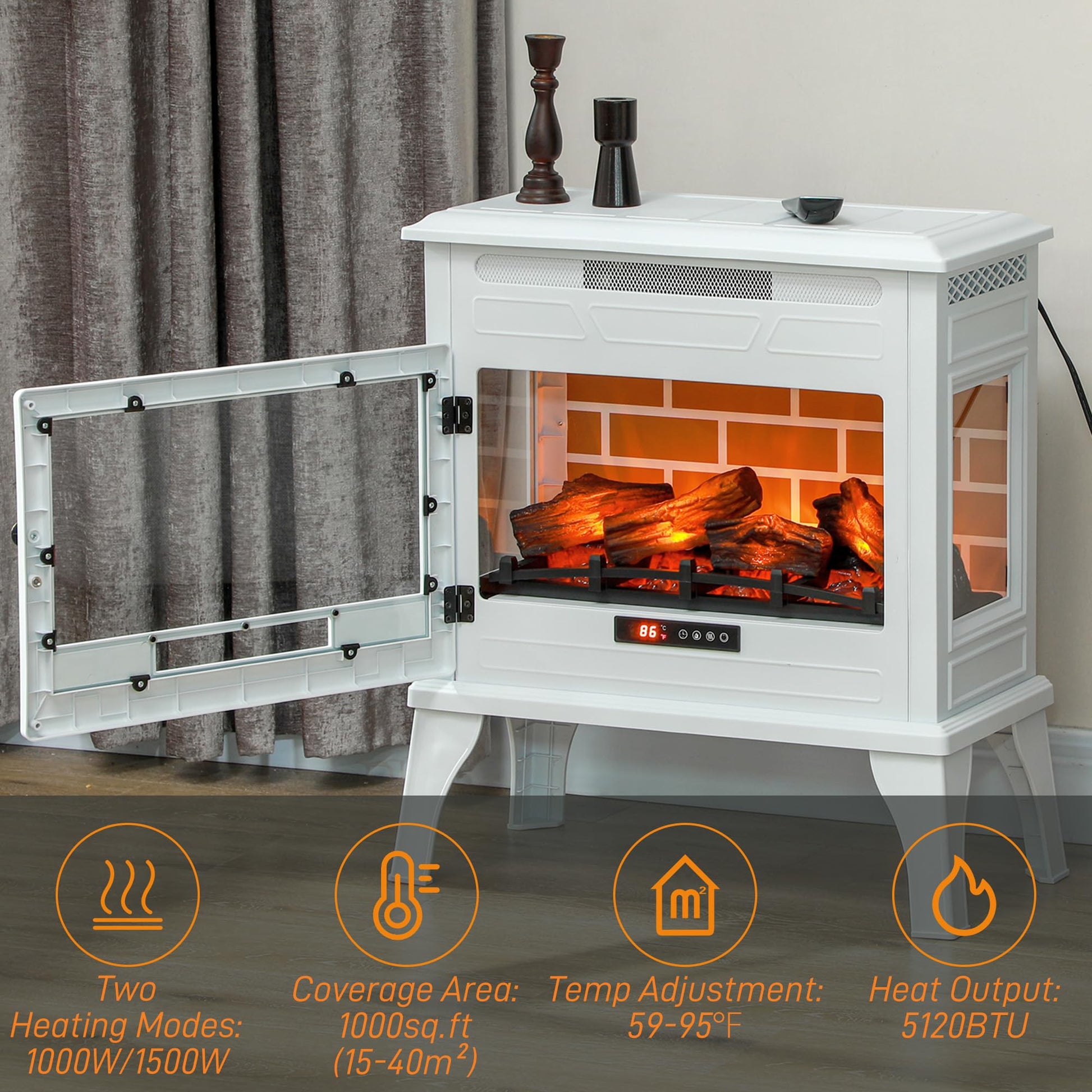 HOMCOM Electric Fireplace Stove, 24" Freestanding Electric Fireplace Infrared Heater with Remote, Adjustable 3D Flame Effect, Thermostat, Overheat Protection, 1000W/1500W, White