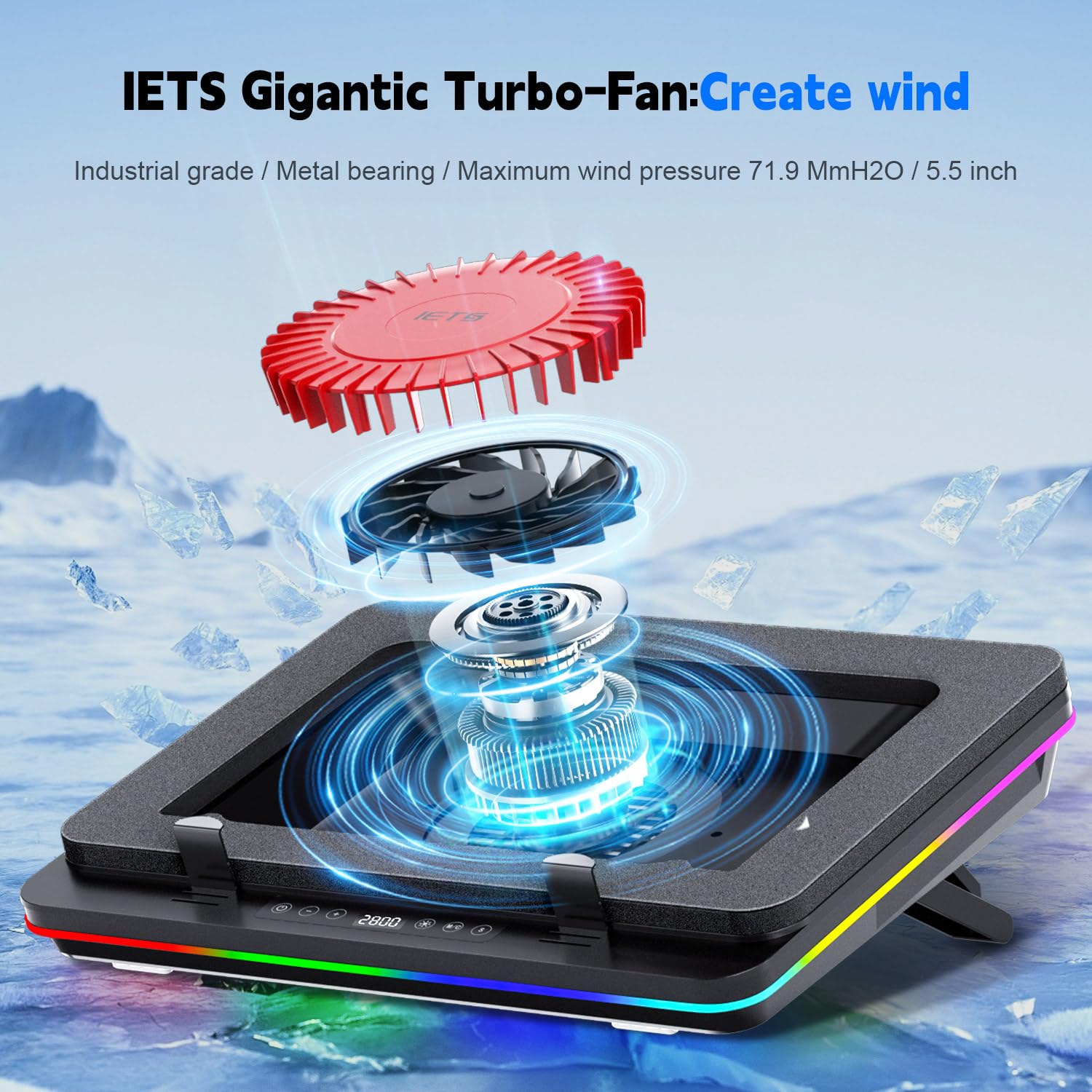 IETS GT600 RGB Laptop Cooling Pad Equipped with Gigantic Turbo-Fan(5.5inch Diameter),Sealed Foam for Rapid Cooling Gaming Laptop,14.1-19.3 inch Laptop Cooler with 3-Port USB Hub,Dust Filter