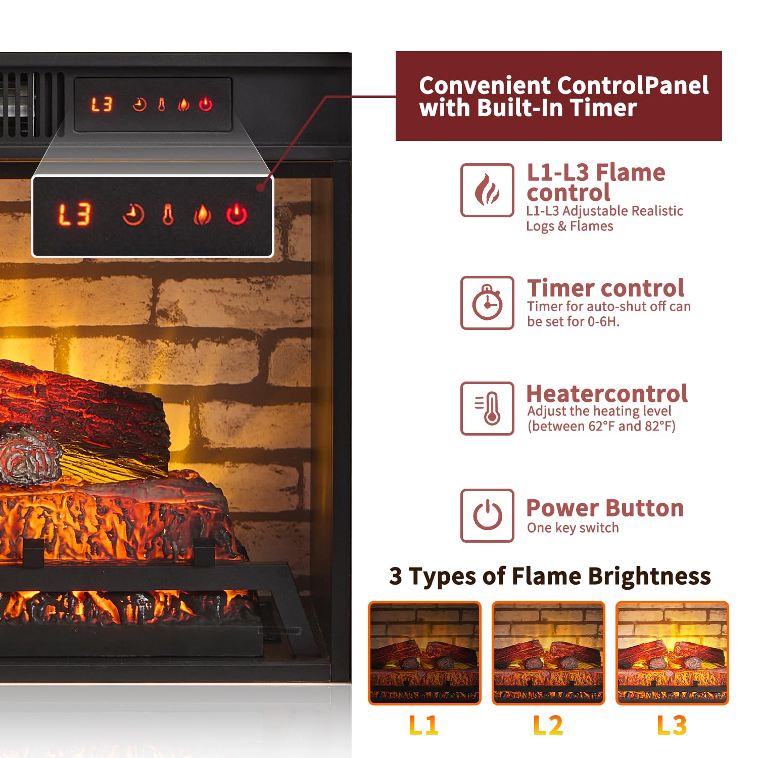 - Built for Peace of Mind: Safety is a top priority. Equipped with an overheat protection system, this fireplace shuts off automatically if things get too hot, giving you complete peace of mind. And with a convenient cable management hole in the back, those pesky wires stay out of sight, keeping your living area neat and tidy