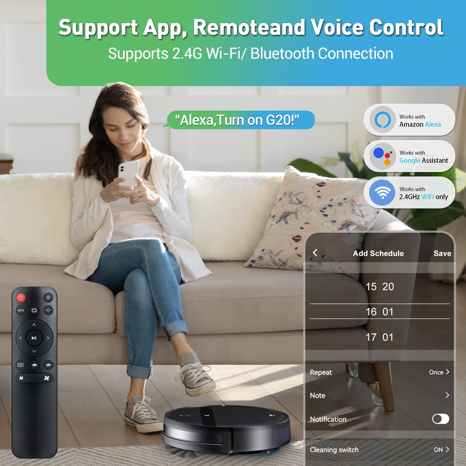 - 2-in-1 Vacuuming and Mopping: Ditch the dull robots! The G20 vacuum robot cleaner and mop combines powerful suction with mopping. Its tangle-free nozzle and 230ml water tank ensure robust cleaning and smooth mopping, transforming your home with ease