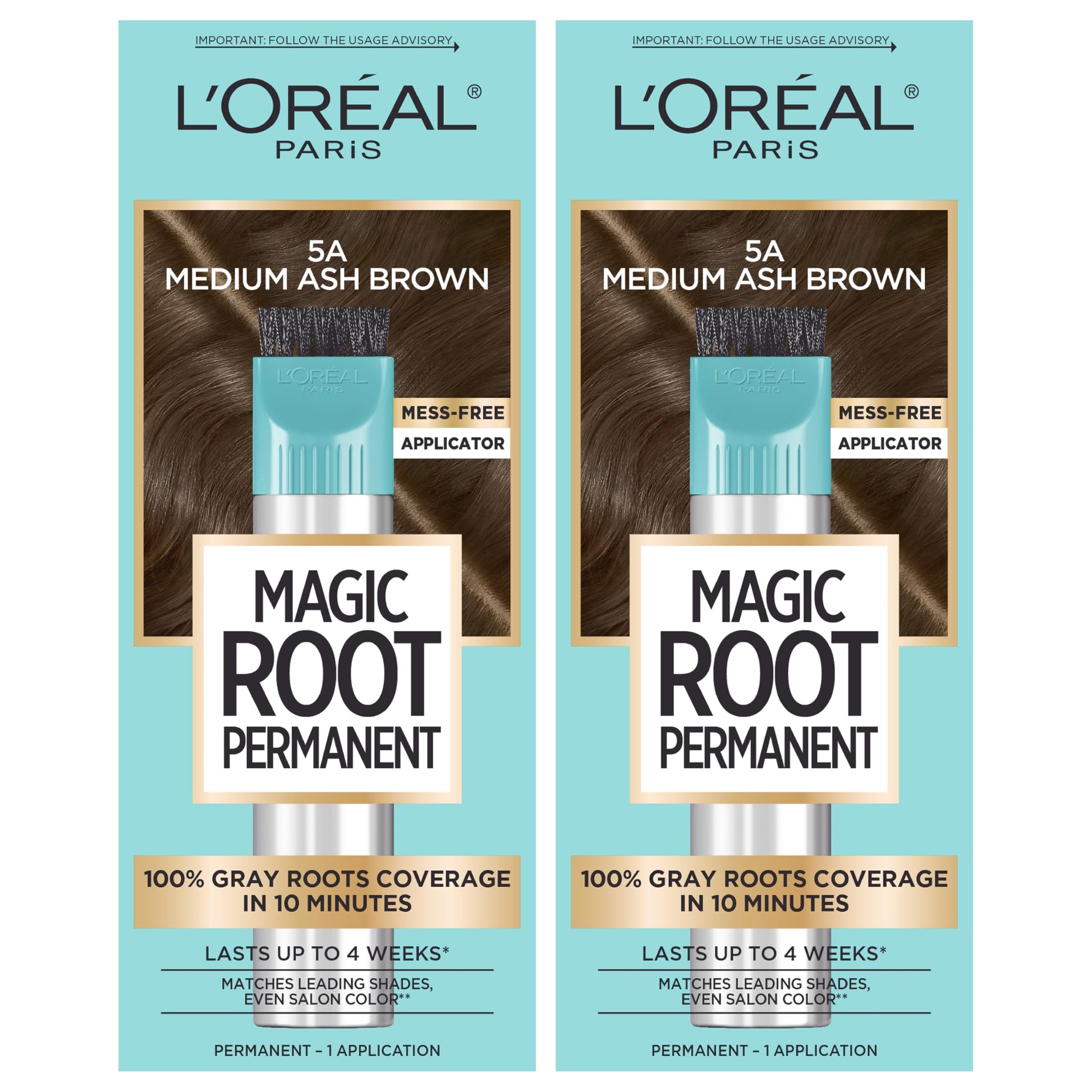 L’Oréal Paris Magic Root Permanent Hair Color, 10 Minute Hair Dye Kit to Rescue Roots with 100% Gray Hair Coverage, 5A Medium Ash Brown, 2 Pack (Packaging May Vary)