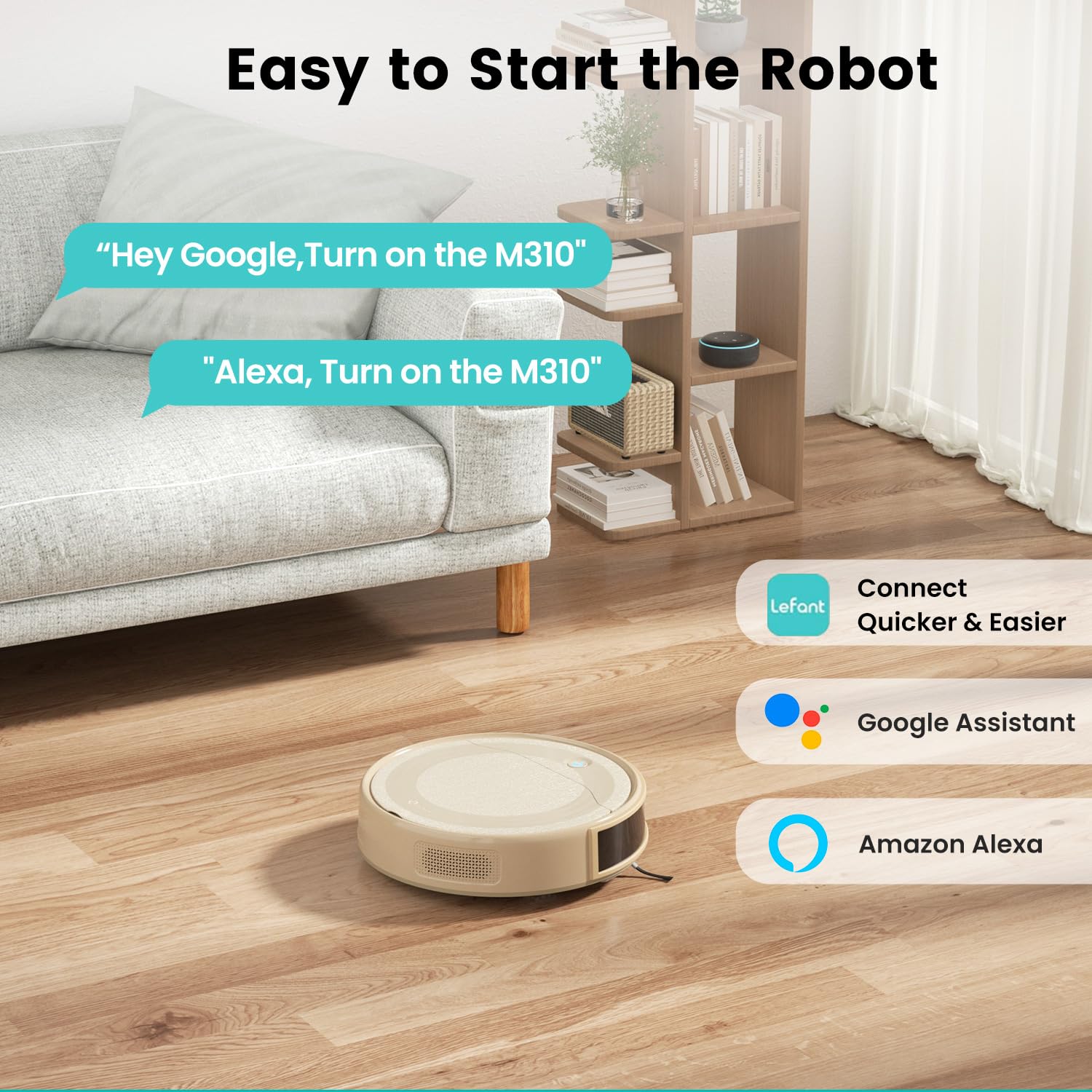 - Smart App and Voice Control: >Lefant App allows you to set schedules, adjust suction power, monitor the cleaning path and change 4 cleaning modes: Auto, Spot, Edge, and Zig-zag Clean. The auto vacuum robot is also compatible with Alexa and Google Assistant, allowing users to make the robot start and stop the clean by voice commands. (NOTE: 2.4 GHz Wi-Fi only )