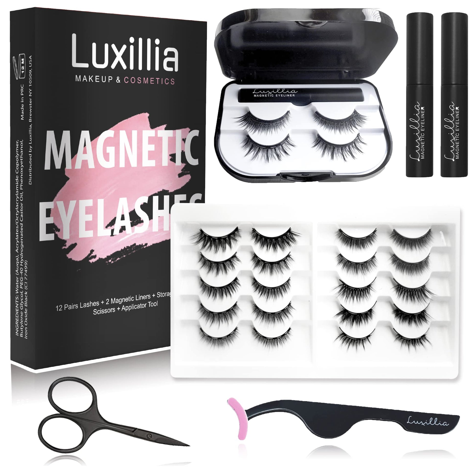 Luxillia Magnetic Eyelashes with Eyeliner 16 Piece Set, Most Natural Looking Magnetic Lashes Kit with Applicator, Best 8D, 3D Look, Reusable Fake Eye Lash, No Glue, Strongest Waterproof Liquid Liner