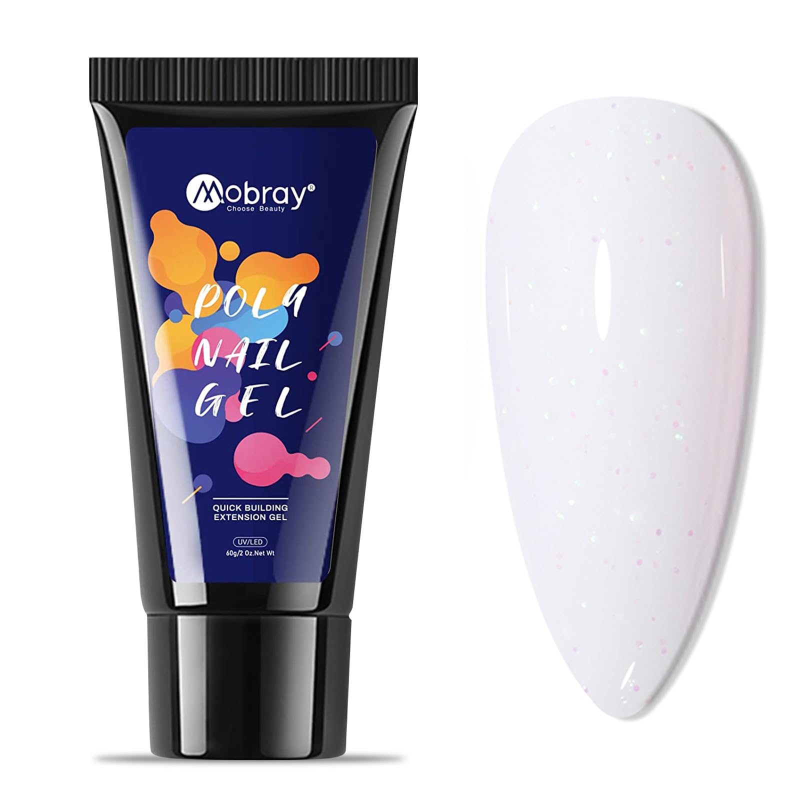 Mobray Poly nail Gel, 60g White Glitter Poly Extension Nail Gel for Thickening Nail Beauty, Trendy Acrylic Gel Manicure Professional Salon Nail DIY Gift for Women(White Sequin)