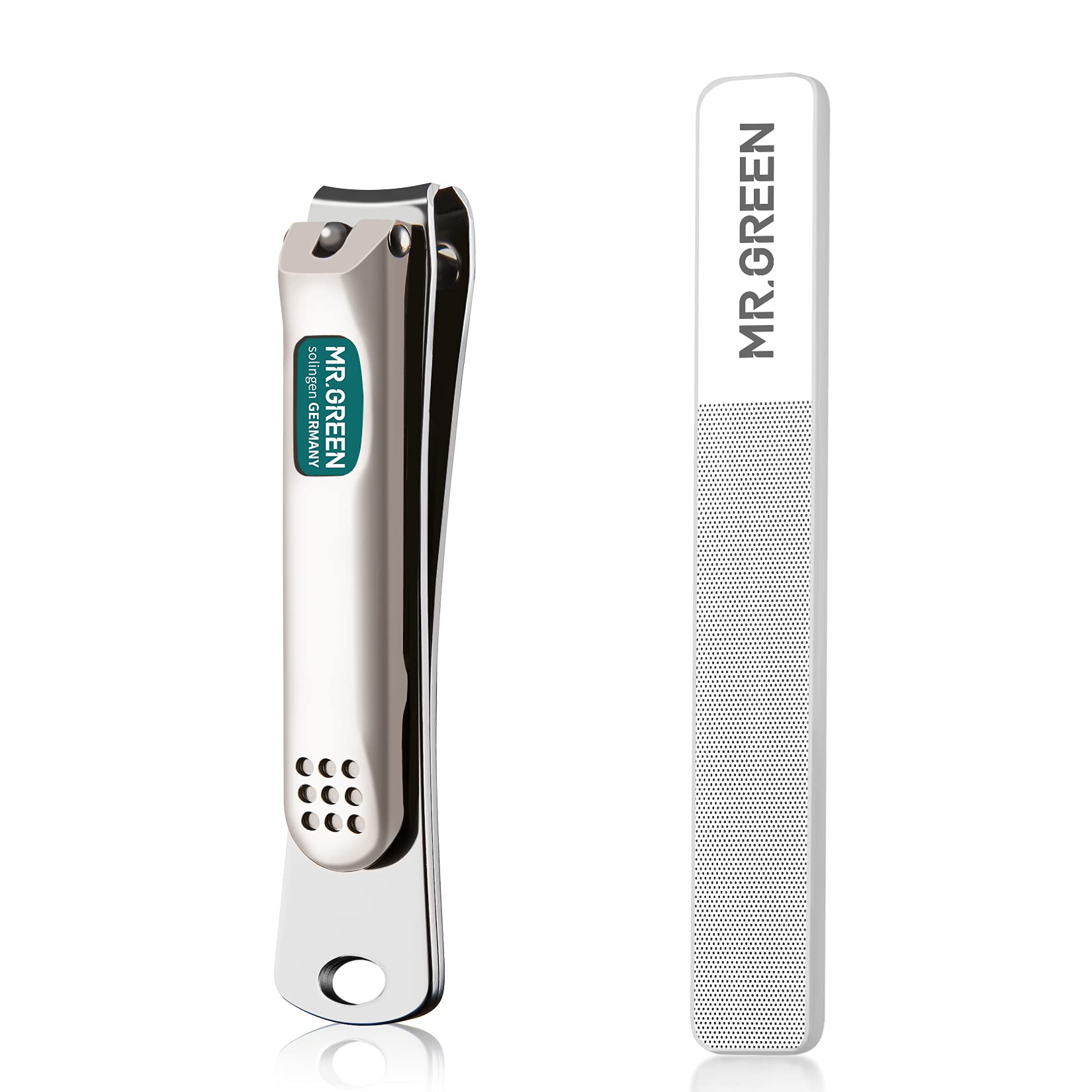 MR.GREEN Nail Clippers Curved Blades Fingernail Cut Nippers Manicure Scissors Stainless Steel Pedicure Tools (Medium+Glass File)