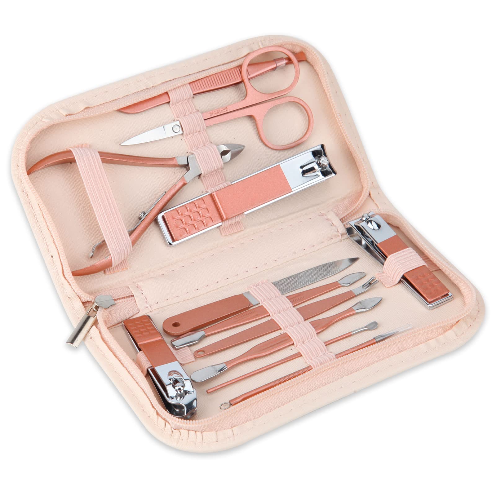 - Convenient and affordable: The high-quality professional manicure and beauty kit contains 12 kinds of care tools for hands, feet and face, which is more economical and affordable than buying it separately. And equipped with pink zipper leather bag, easy to carry, suitable for a variety of places