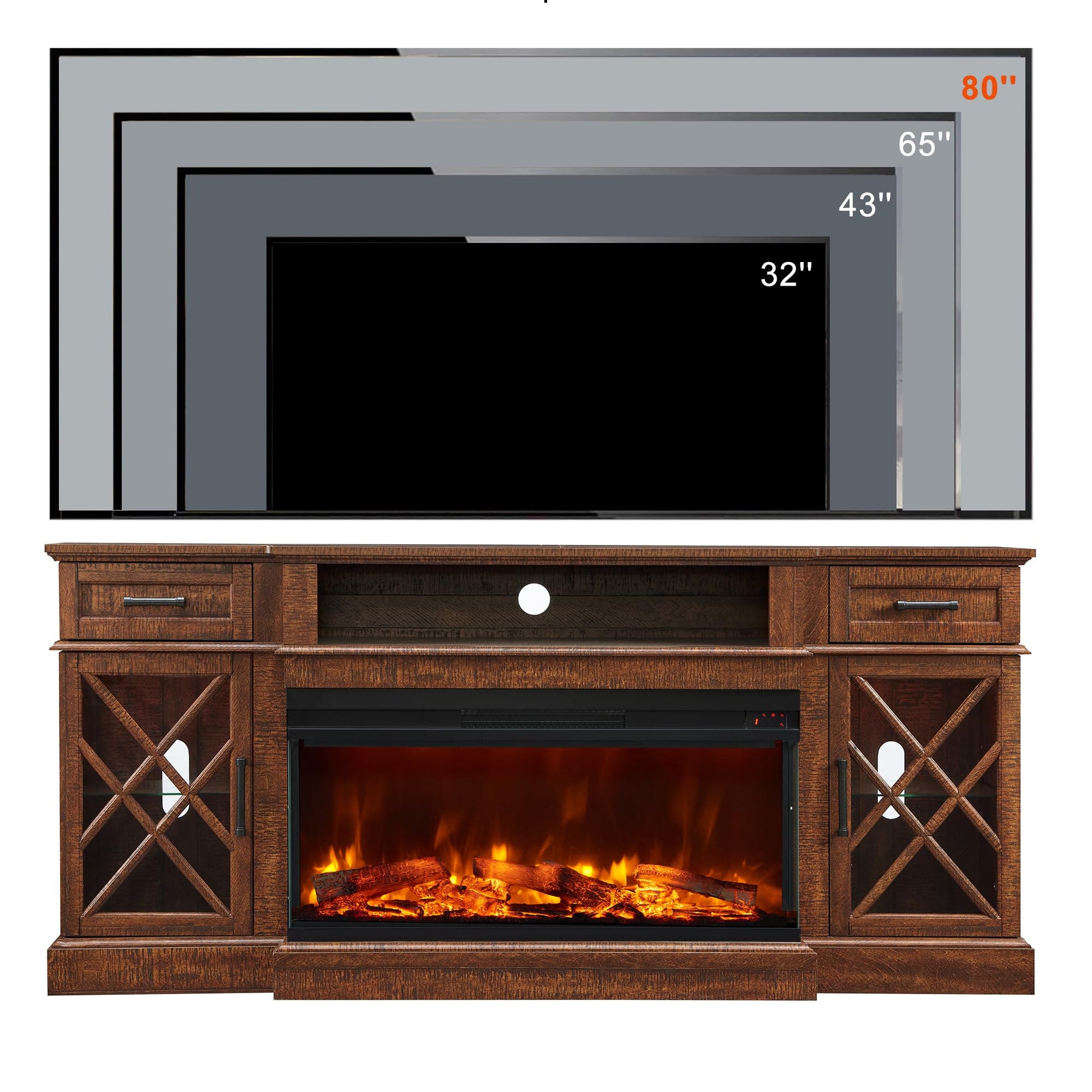 - Aesthetic Excellence Crafted with precision and an eye for elegance, our farmhouse TV stand effortlessly complements various interior styles. Whether your space boasts a classic, contemporary, or eclectic vibe, our fireplace TV stand becomes a harmonious addition that elevates your decor.