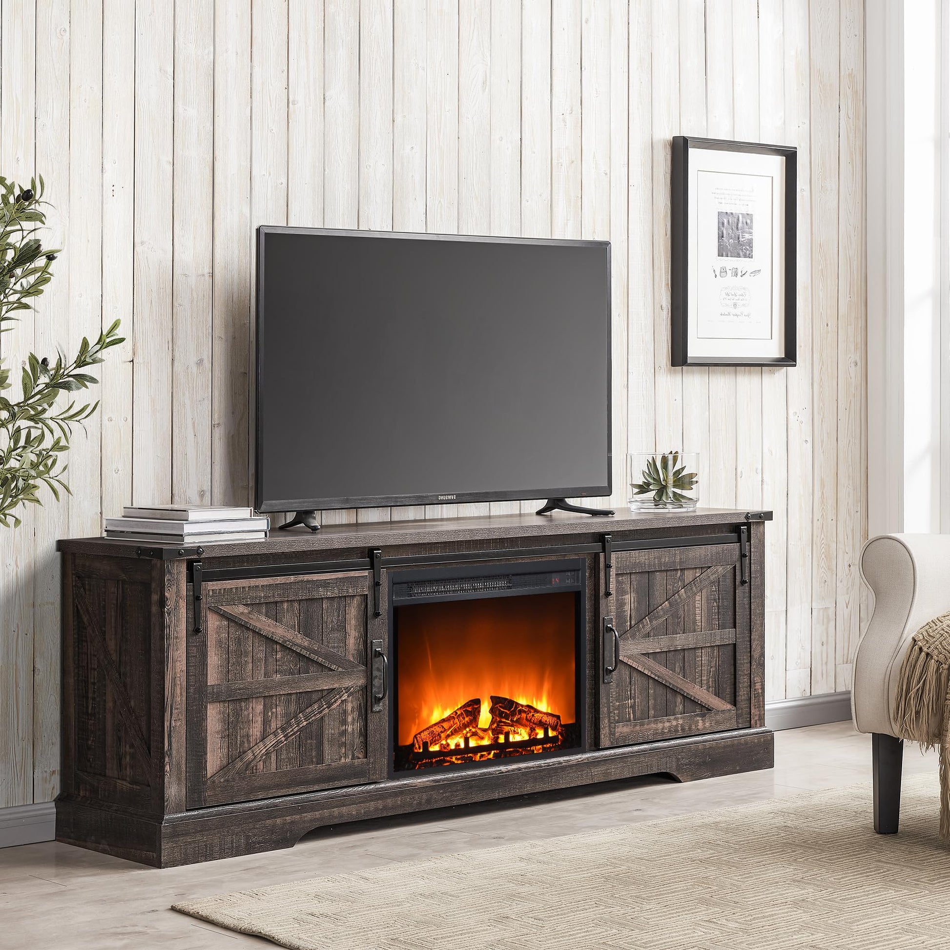 - Gorgeous and Glamorous Farmhouse Style Fireplace TV Stand: OKD Fireplace tv stand features an exquisite sliding barn door and retro metal decor. Its unique distressed finish is wonderfully eye-catching, and it has natural variations in grain, color, and texture, giving every piece a unique look, and easily creating a rustic, charming, cozy living room. Matches perfectly with other furniture in the OKD living room furniture series.