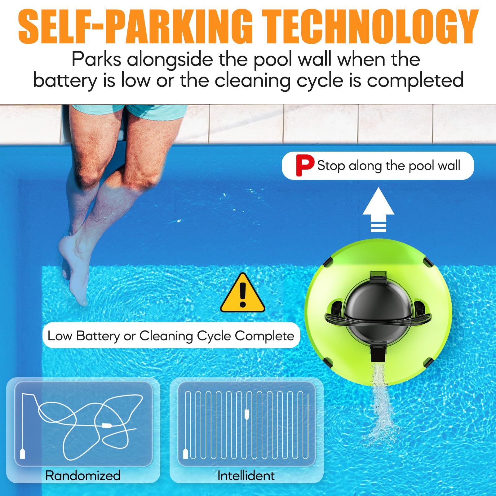 Pool Vacuum for Above Ground Pool Robot, Cordless Robotic Pool Cleaner for In - Ground Flat Pools up to 1000 Sq.Ft, Automatic Robot Pool Cleaner with Self - Parking Tech 120 Mins