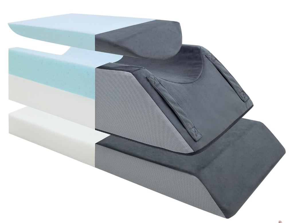 - Non-Slip Bottom Design: Silicone particles with a non-slip bottom increase the friction of the post-surgery leg elevation pillows and prevent the adjustable leg elevation pillow from moving during use. The adjustable leg elevation pillow has multiple Velcro tabs between the memory foam layers to keep it in place so it doesn't slide when you elevate your leg and doesn't fall apart when you move it out of position.