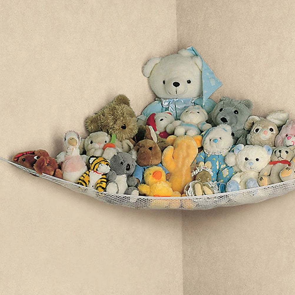Transform your Children's Room with this versatile Kids Wall Net Organizer. Designed in a charming Hammock Design, this hanging mesh storage net is crafted from high-quality White Gauze, making it a reliable and attractive option for storing Children's Toys. Whether used as a Wall Hanging or mounted in a corner, it provides an efficient way to keep toys organized and accessible, ensuring a clutter-free and inviting environment for both Children and Parents.-toy storage hanging net