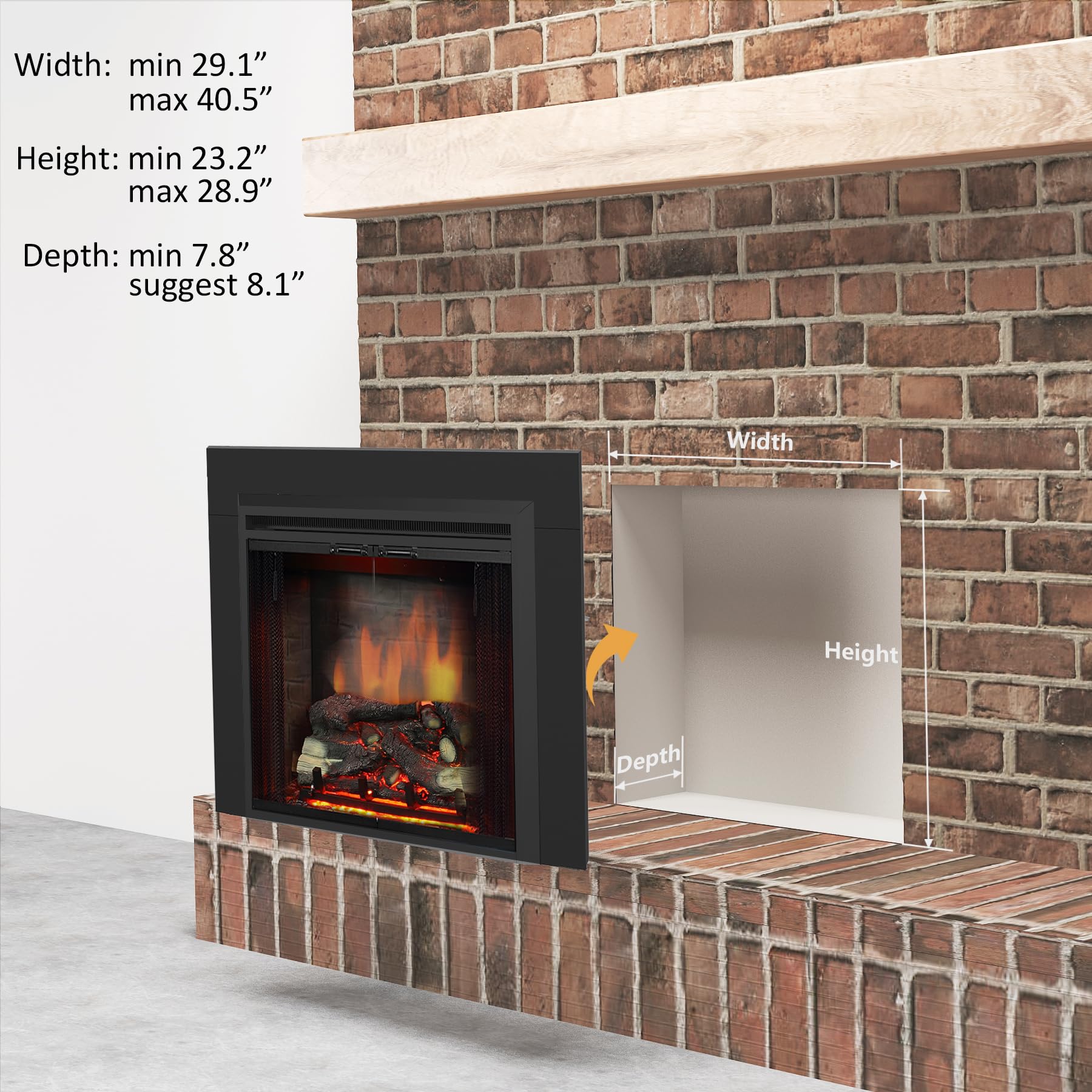 PuraFlame Klaus 30” Electric Fireplace Insert with Trim Kit, Fire Crackling Sound, Resin Log, Glass Door and Mesh Screen, 750/1500W Heater, Black