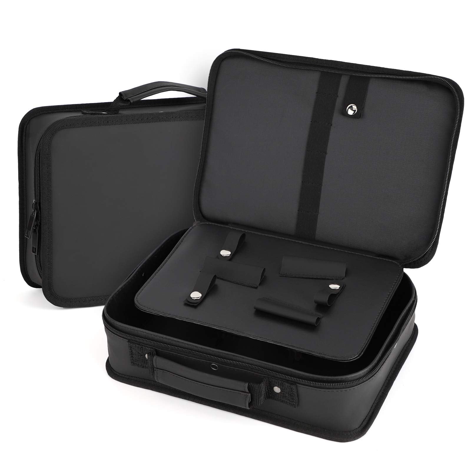 - 【PVC Compartment and Elastic Band for Organized Look】Special design with PVC compartment for protection of clipper. Elastic bands for keeping the scissors and combs in place, preventing scratches and shock.