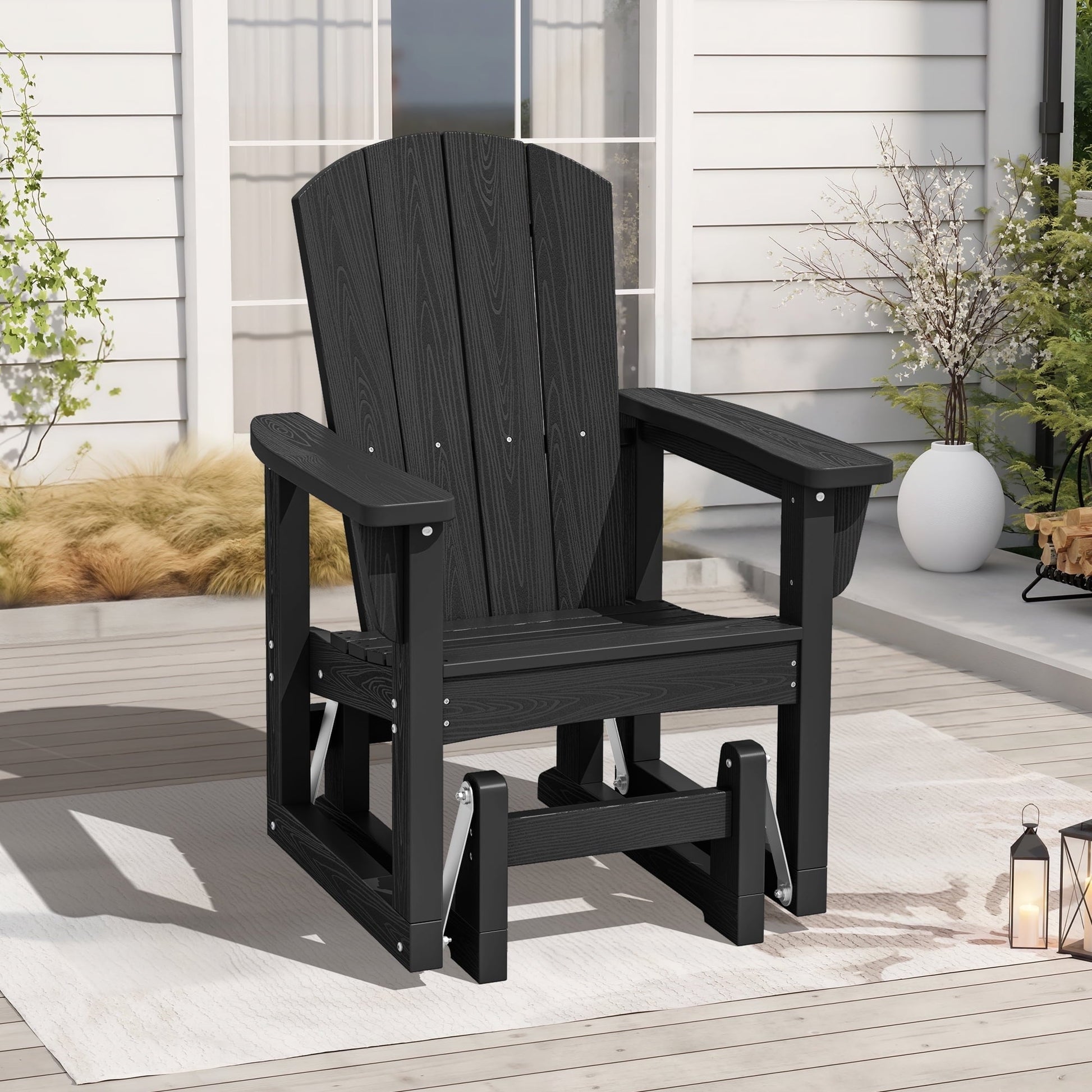SERWALL Outdoor Glider Chair, HDPE Wood-Like Patio Glider Rocker All-Weather Porch Glider Black