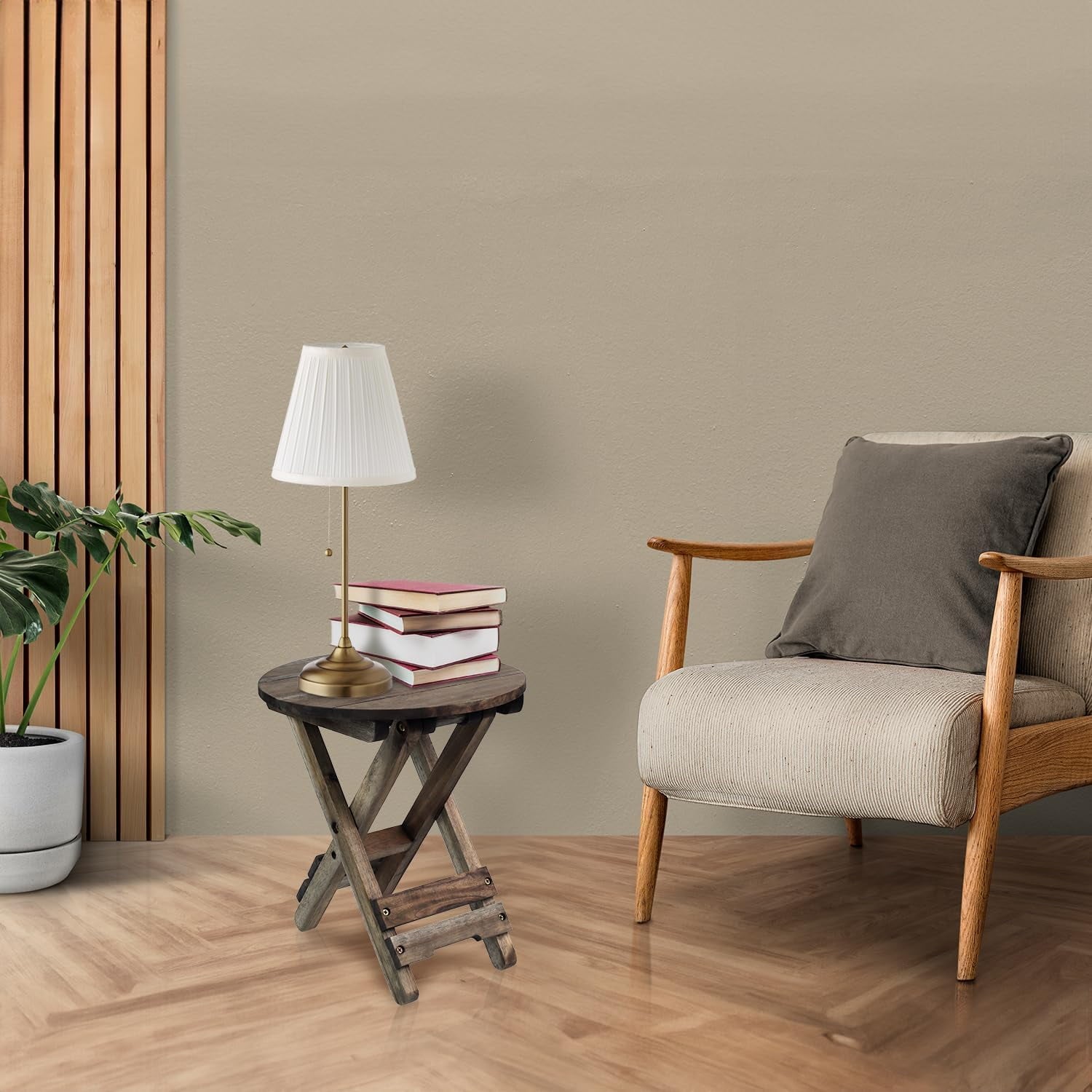 Small Patio Table, Outdoor Folding Side Table, Portable Side Table, Small Side Table, Accent Table, Small Coffee End Table, Wood Table Top for Living Room, Bedroom, Toilet, Small Space