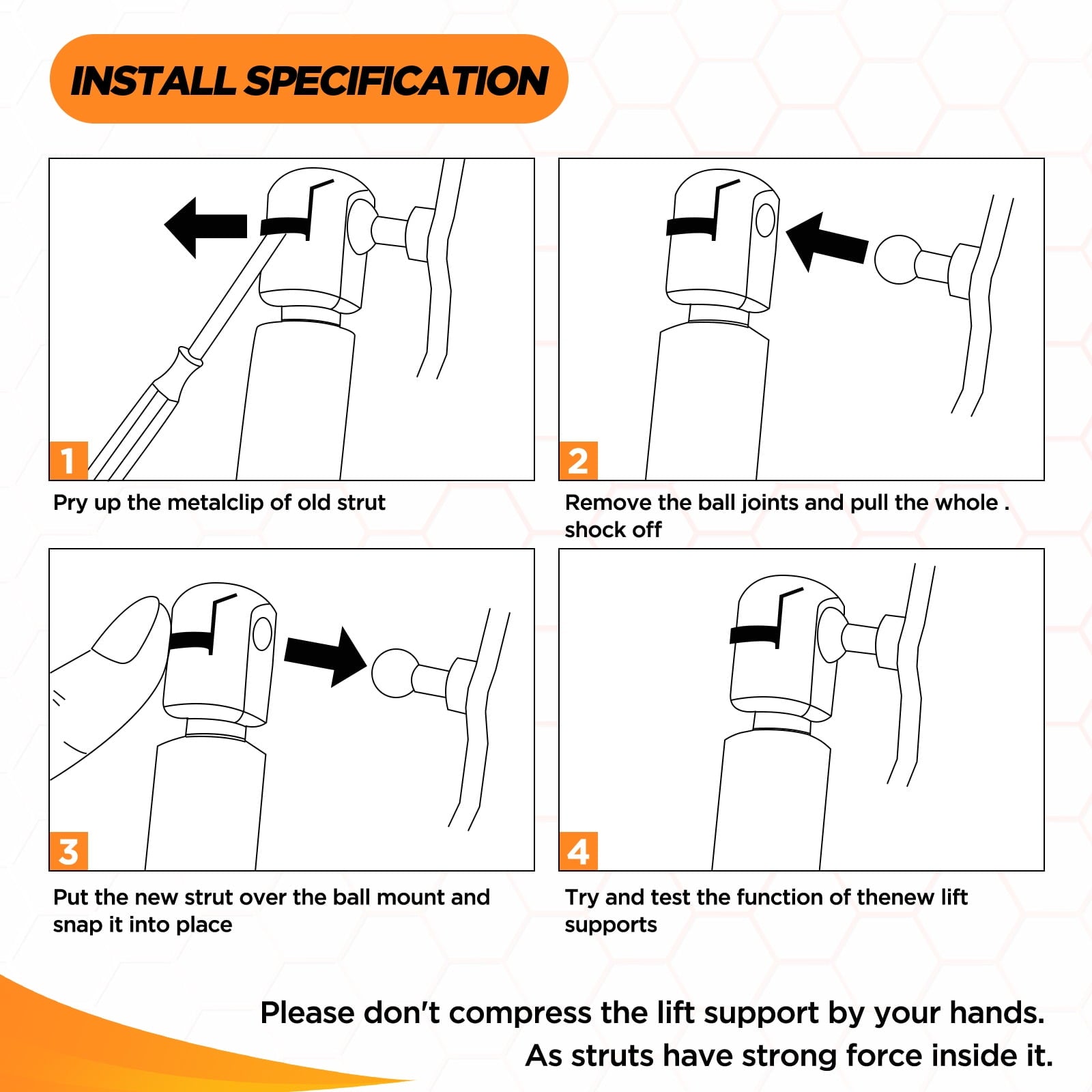 2: OE Style Brackets: We measured the OE lift supports precisely, only for making our products fit your vehicles and install easily.