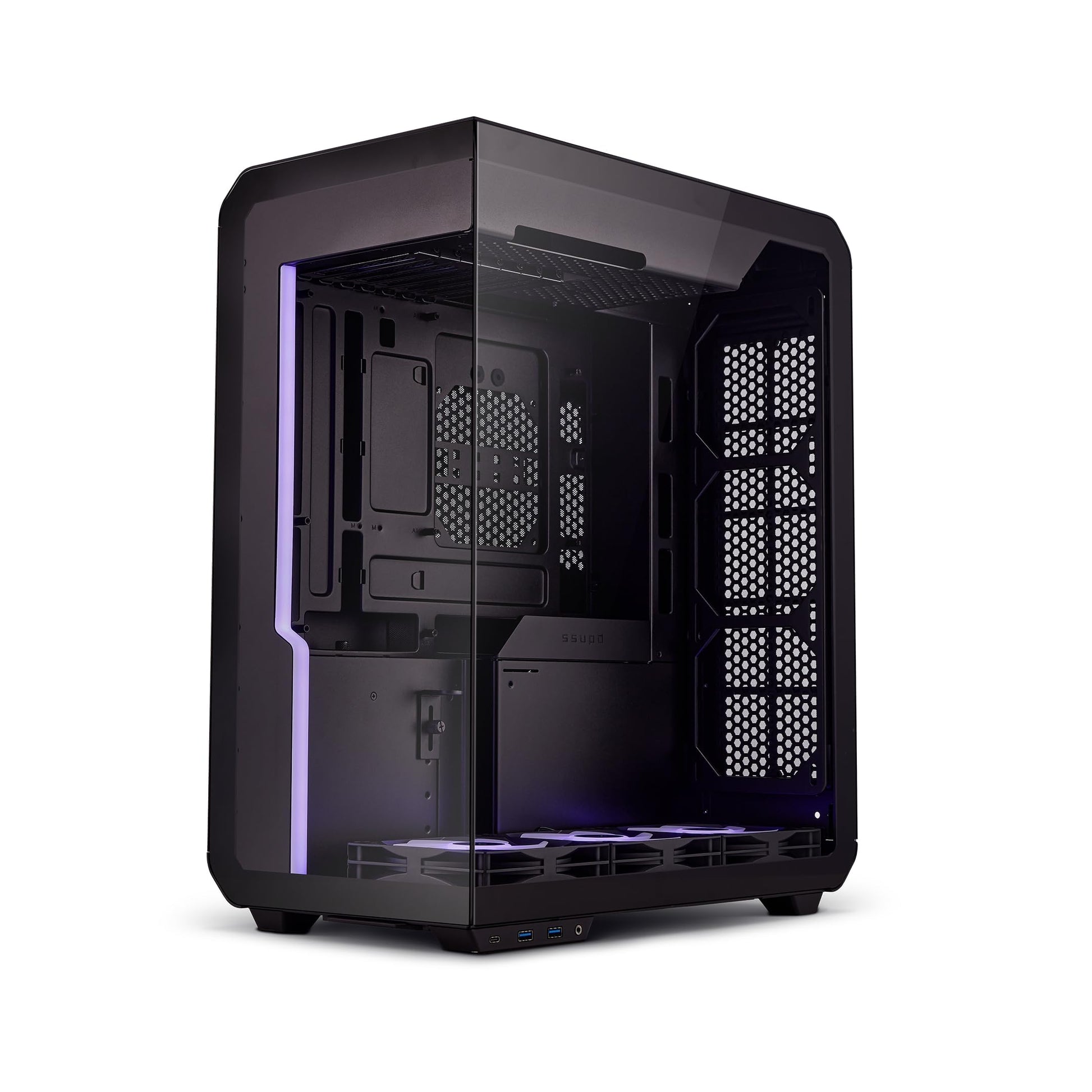 - Futuristic Design: Dual tempered glass with a left-side panoramic view