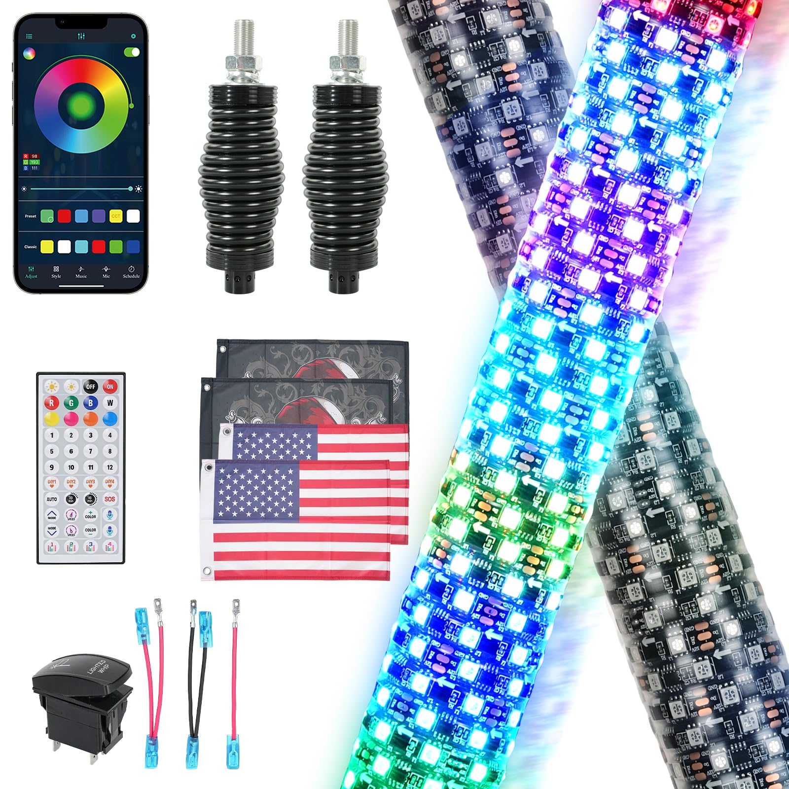 STARKMAN (2 Pack) 3FT Fat Whip Lights, Music LED Whip Lights with App & Remote Control, Spiral RGB Chase Light Up Antenna Whip with Rocker Switch, for SXS ATV UTV RZR Can-am X3 Off-Road