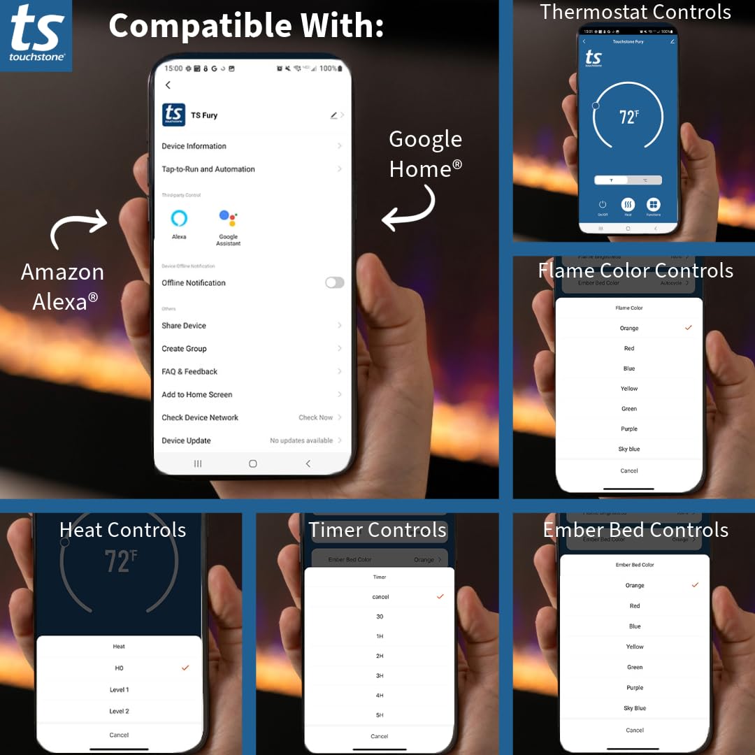 - SMART AND CONVIENENT CONTROL: Fury is equipped with Wifi connectivity, as well as Alexa compatibility, giving the option to control heater and flame settings from the onboard touchscreen, the included remote control, the smartphone app, or by voice command.
