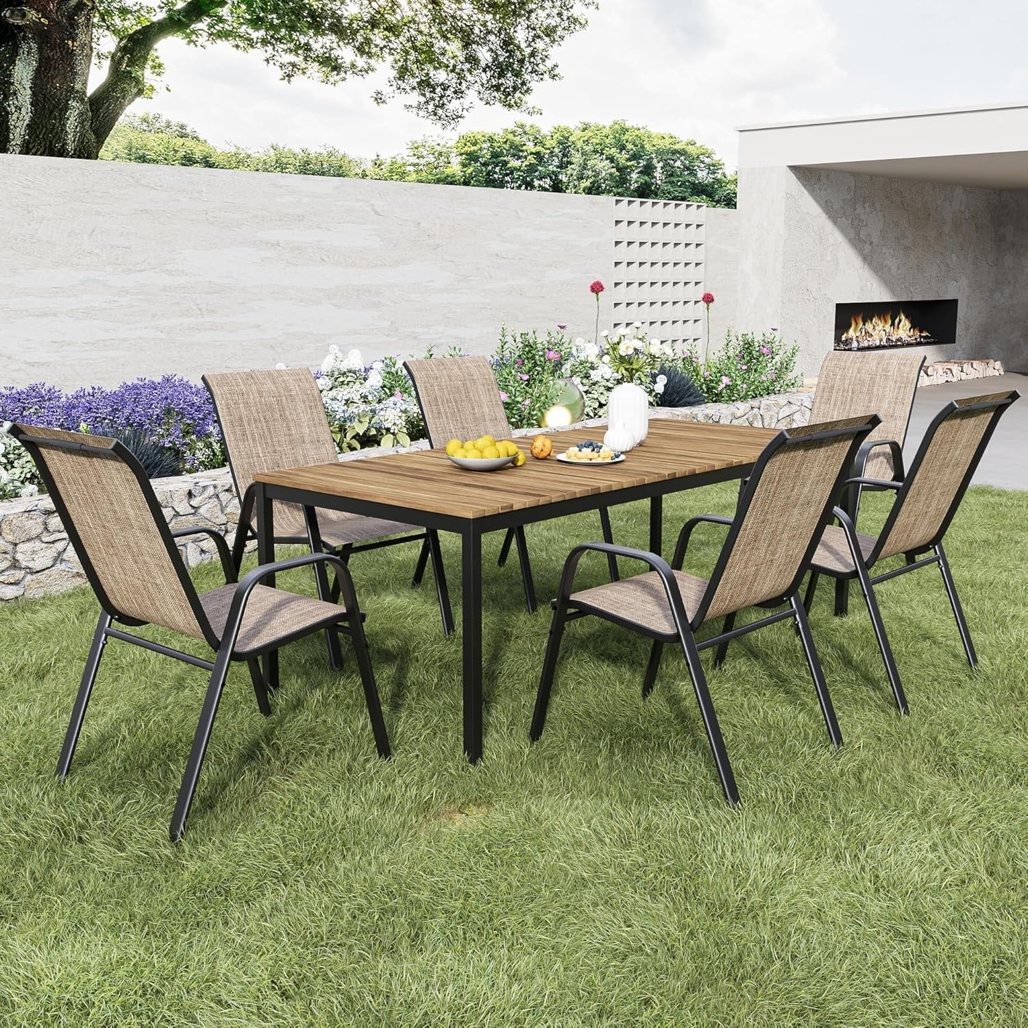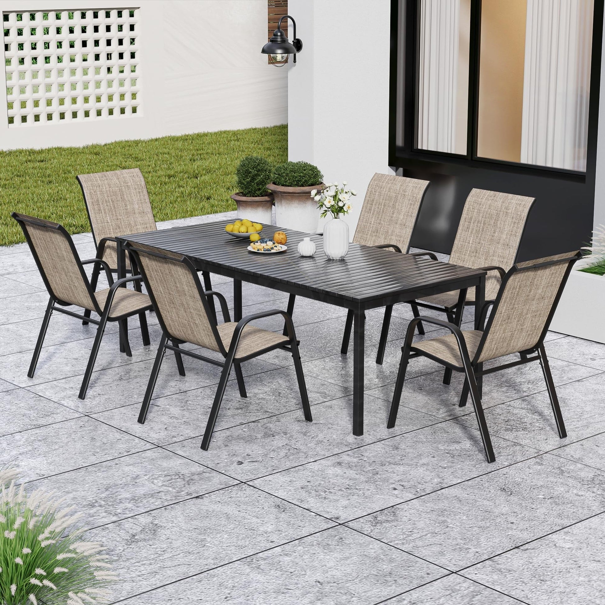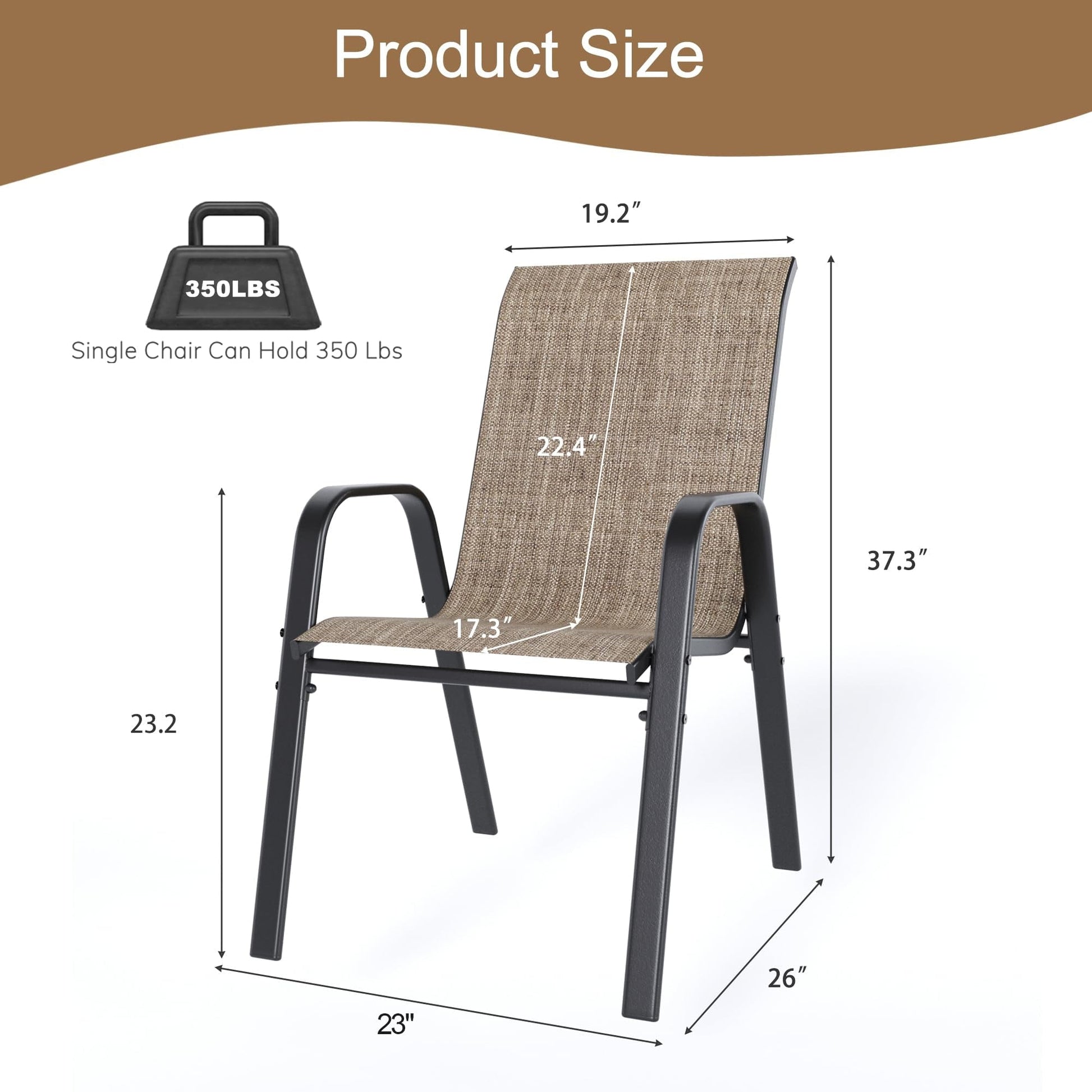 Elevate your outdoor dining experience with these all-weather patio dining chairs! The stackable design saves space when not in use, making storage a breeze. Built with a rustproof metal frame and heavy-duty Textilene fabric, they offer reliable durability and support up to 330lbs. Perfect for your backyard, garden, or poolside, these chairs combine functionality with style, standing up to various weather conditions while providing a comfortable seating option for gatherings and meals.