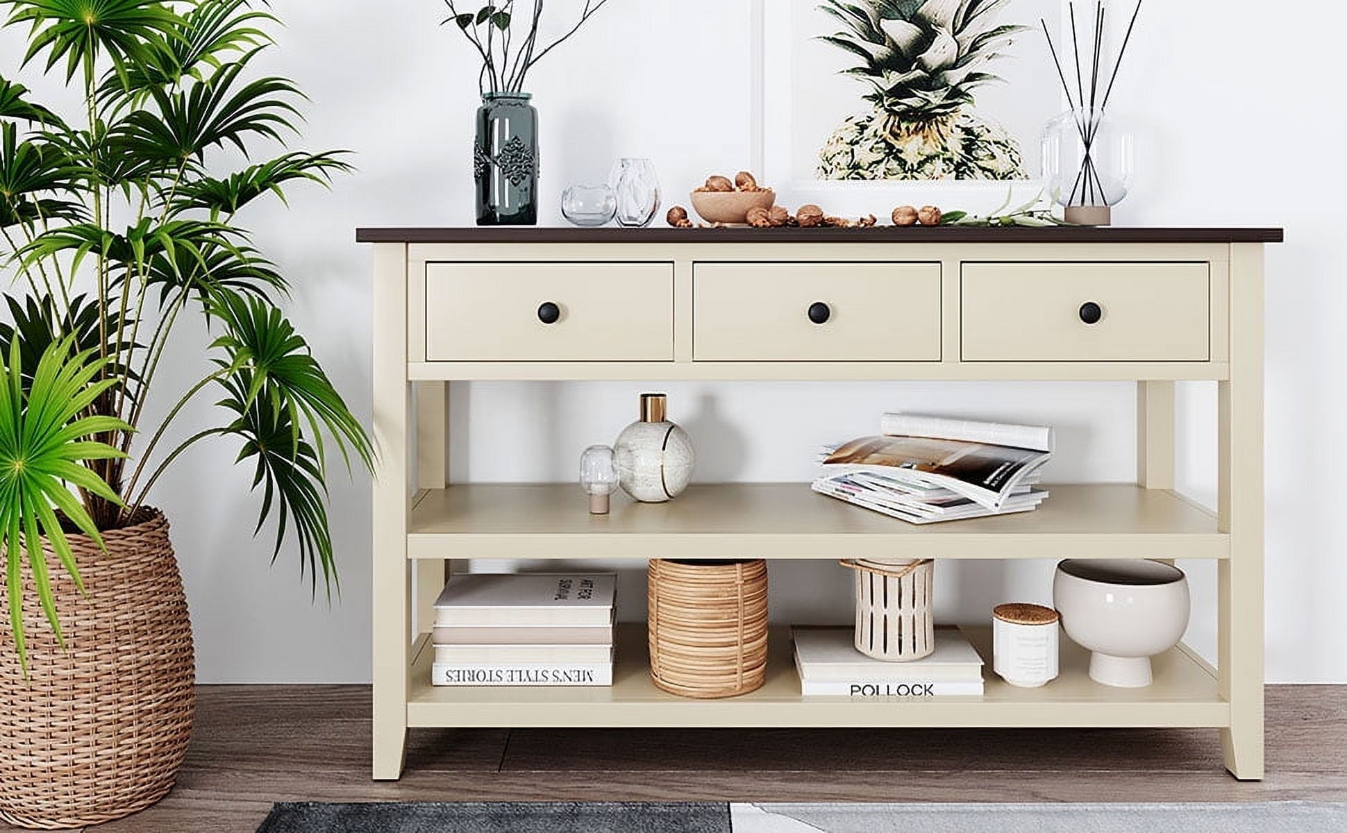Mid-century Style: This classic design console table with simple clean lines and circular handle in traditional shape brings mid-century atmosphere to your home. The open design is also fully aligned with the retro aesthetic and practical usage. The neat structure of this console table highlights high-end and dignified. The classic rectangular frame reflects rigorous and understated spirits. And this console table available in multiple colors. This style is a perfect fusion of retro and modern,