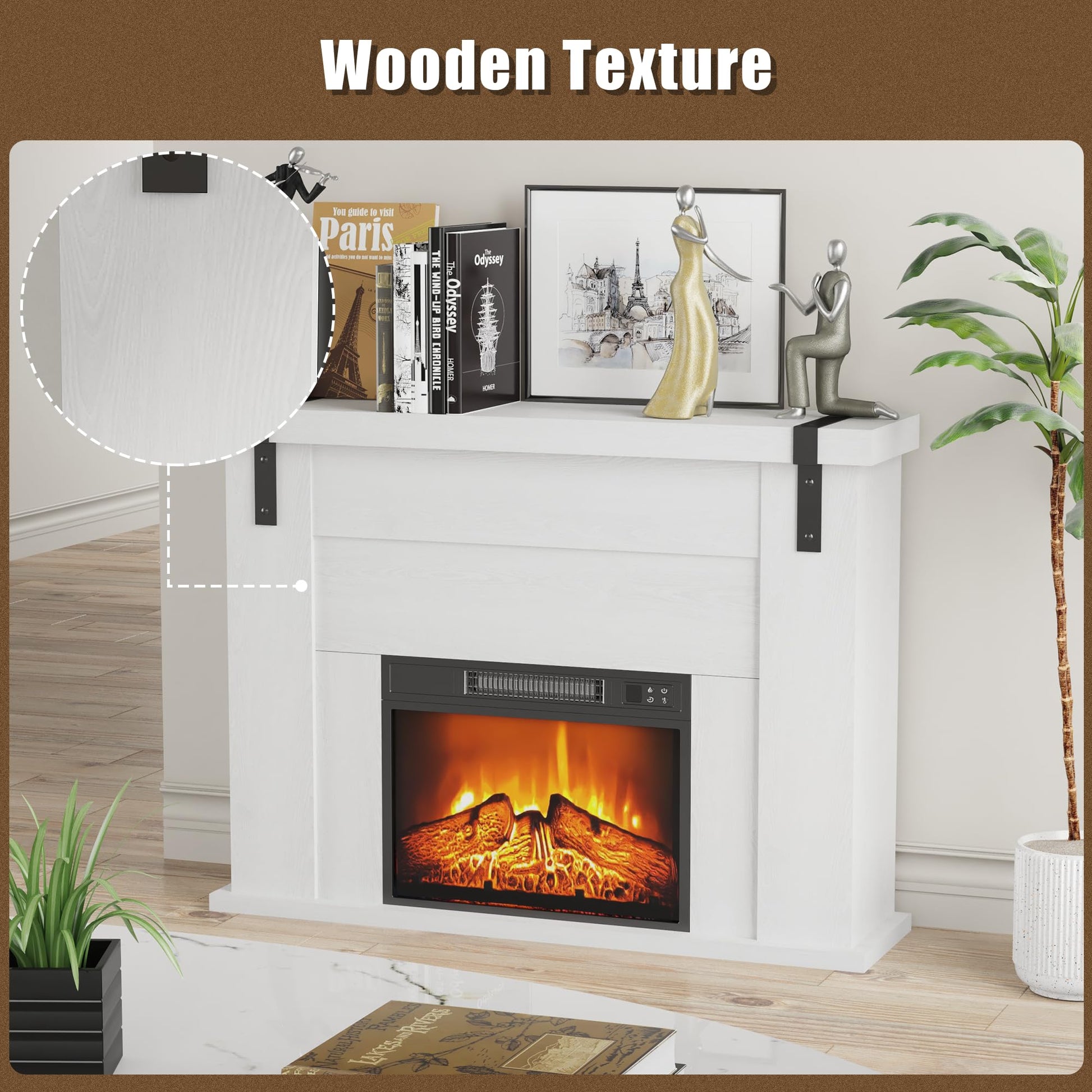 TRONLEE 46" Fireplace Mantel Cabinet, 34.7 inches Tall Includes 23" Freestanding 1400W Electric Fireplace, Remote Control, for Living Room, Study, Bedroom, 46.45W x 34.72 H(White Oak, 23'' Heater)