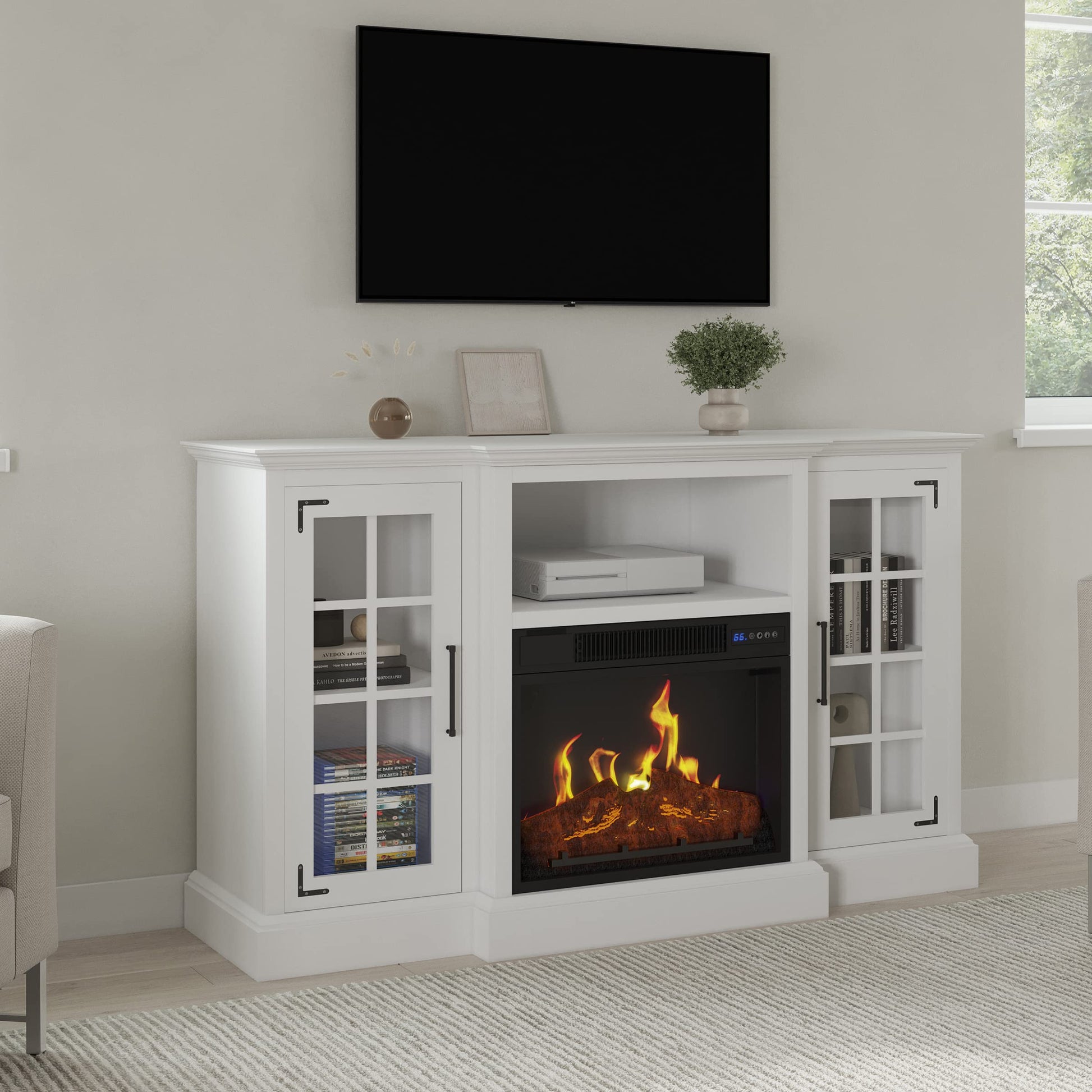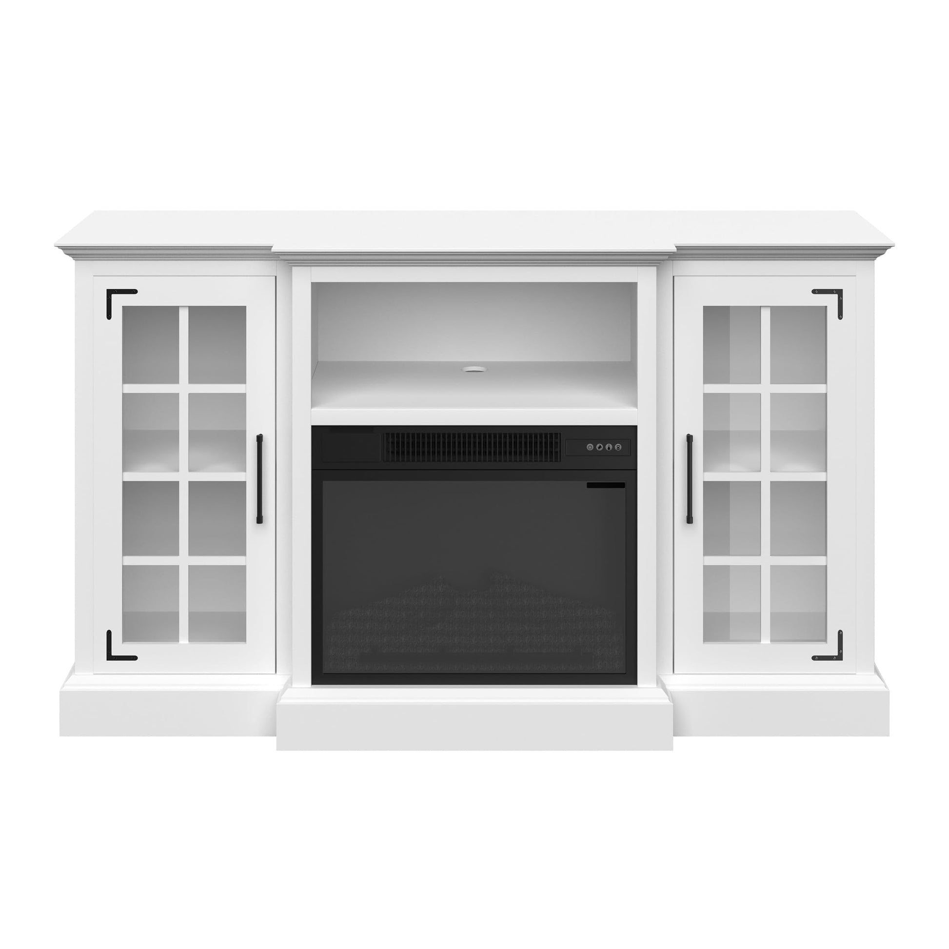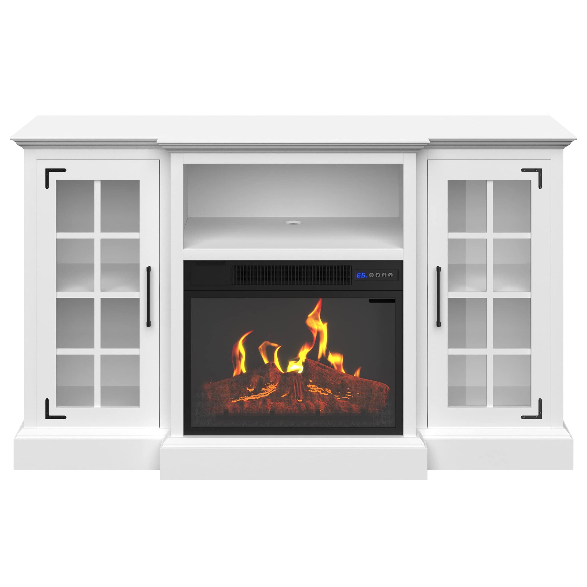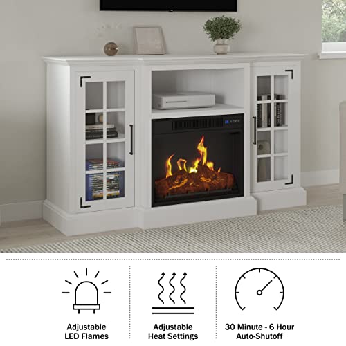 TV Stand with Electric Fireplace Fits TVs up to 65-Inches - Media Console with Storage Cabinet, Adjustable Heat, and LED Flames by Northwest (White)