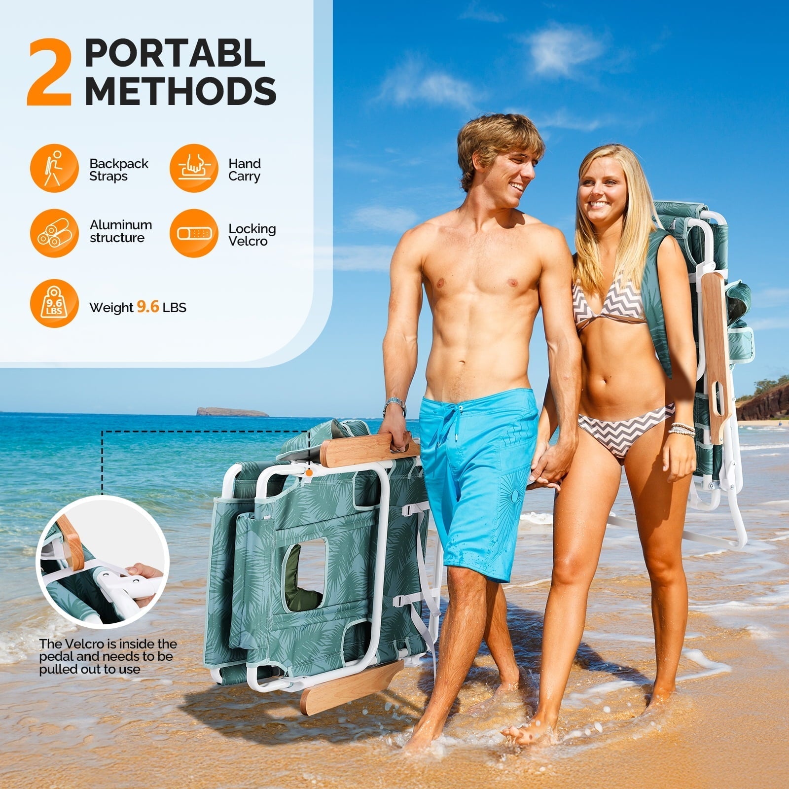 UBesGoo 3-in-1 Patio Lounger - Reclining Outdoor Chair with Built-in Drink Holder & Convenient Carry Bag, Green