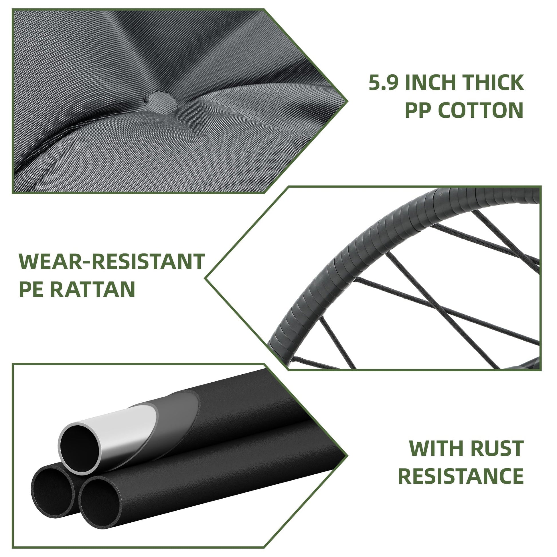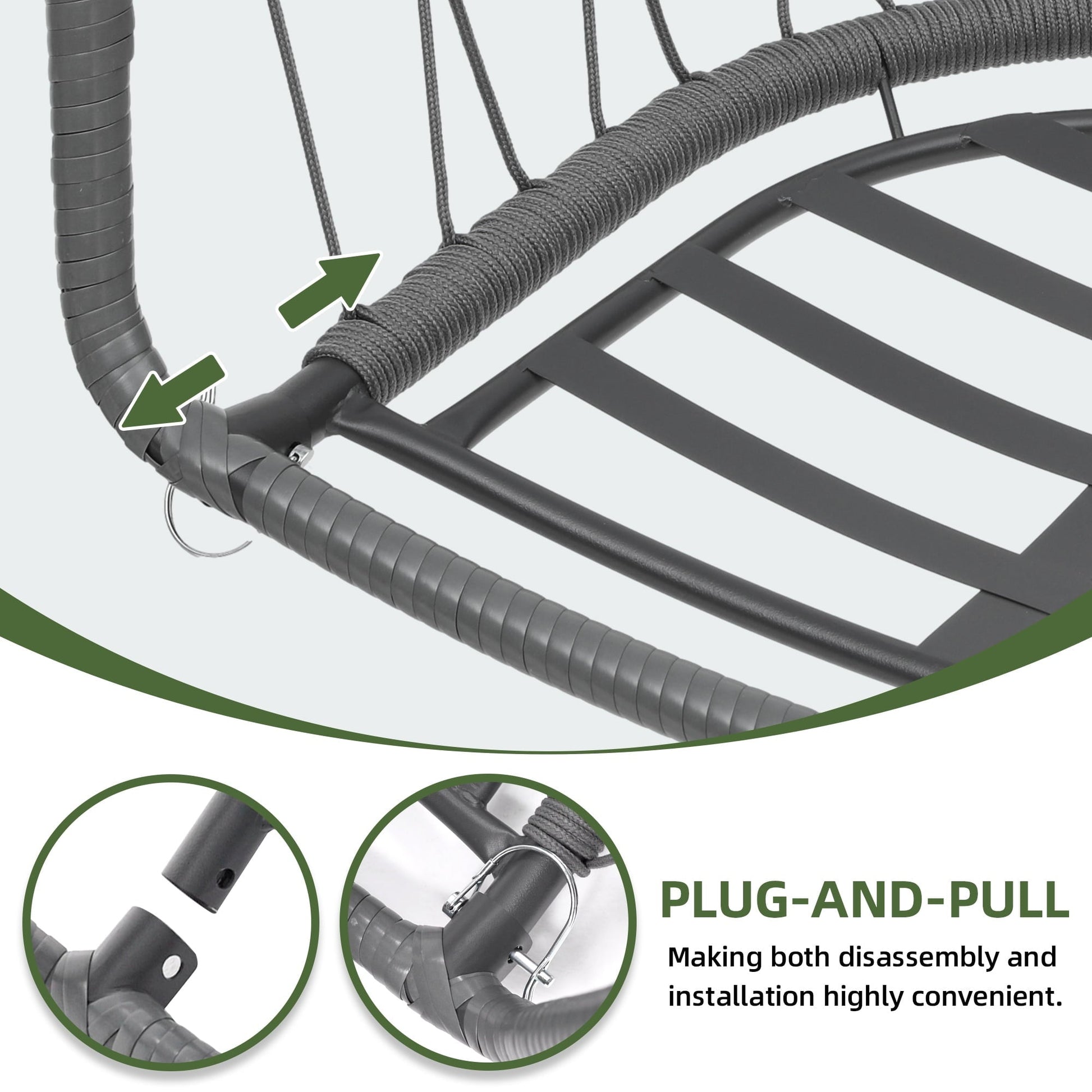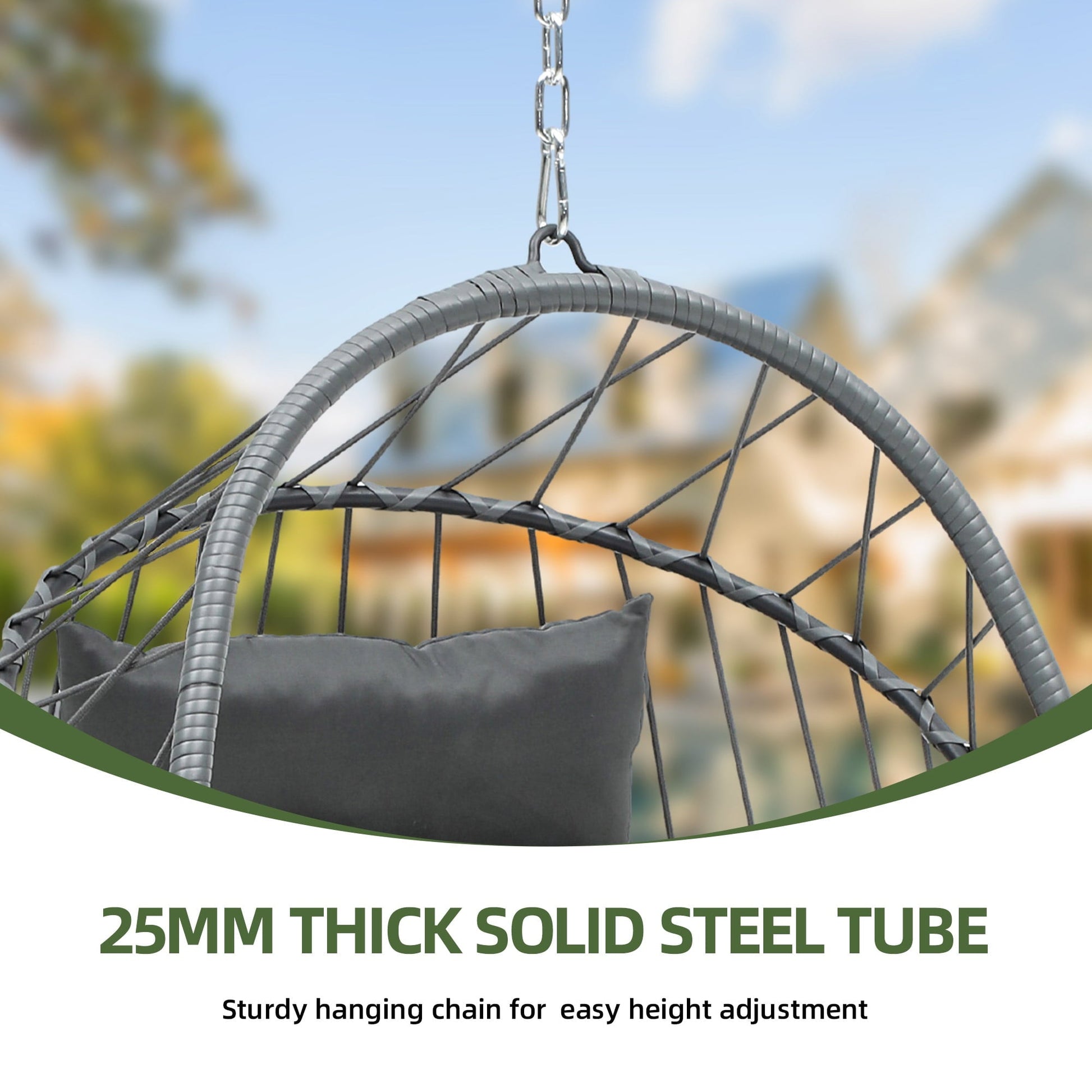 Uforic 105 x 74 x 72 cm Hanging Chair with Cushions, Chain & S-Hooks for Living Room Patio Garden, Gray