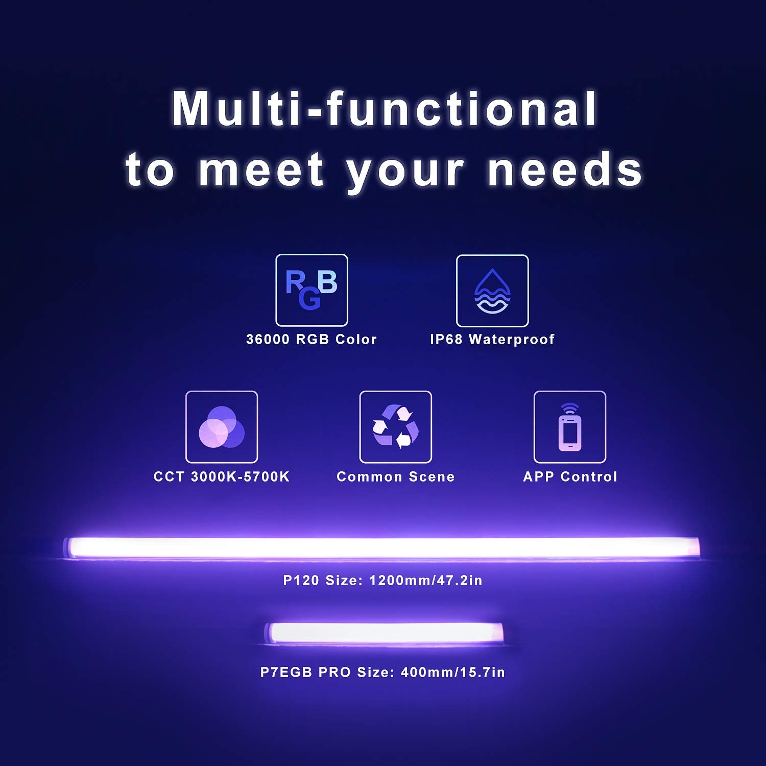 - 【APP Intelligent Control】120cm RGB LED Video Light, through APP, you can connect mobile phone and this light, switch various scene modes with easy operation.Provides RGB full color,you can not only get the fill-in light with various colors through the remote control touch pad,but also choose your own unique color through the color palette on the mobile phone APP.