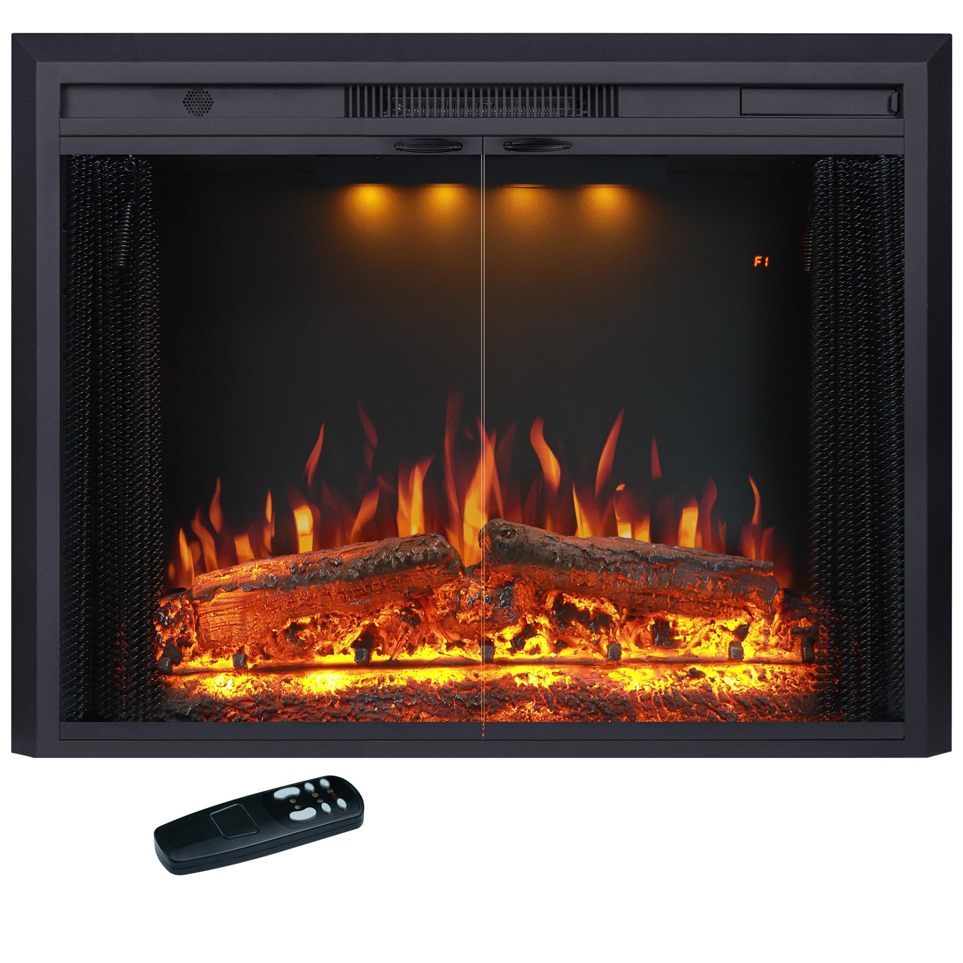 Valuxhome 35.63” W 27.5" H Electric Fireplace Insert with Low/High Temperature Settings, Movable Mesh Screen and Glass Door, 1-9H Timer, Remote and Panel Control