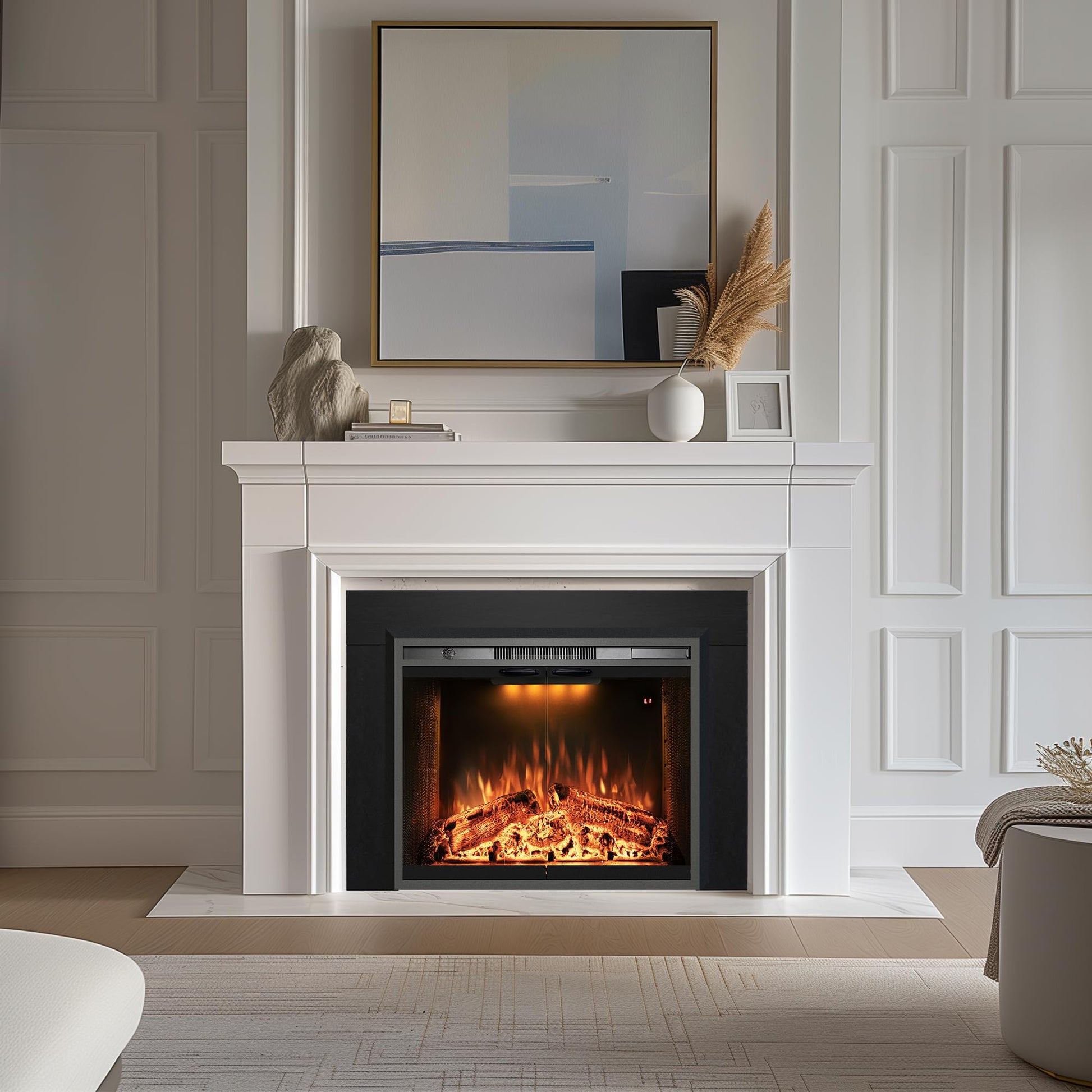 - [Dimensions & Attractive Design] Front trim kit overall dimension: 41.92'W x 29.52'H x 0.79'D. Electric fireplace insert size: 29.6'L X 7.7'D X 23.62'H. 3 piece surround kit can perfectly cover the unsightly gap between the fireplace and the wall opening, making your fireplace look just like a traditional one, but avoiding the dust, smoke and potential fire accidents.
