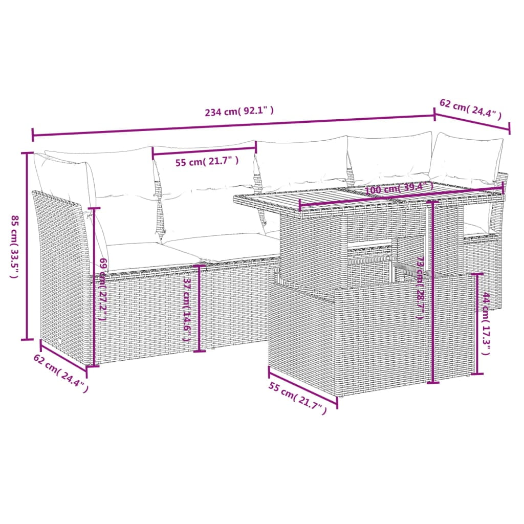 - Delivery Contains: 2 x Corner seat, 2 x Centre seat, 1 x Table, 6 x Back cushion, 4 x Seat cushion with removable and washable cover