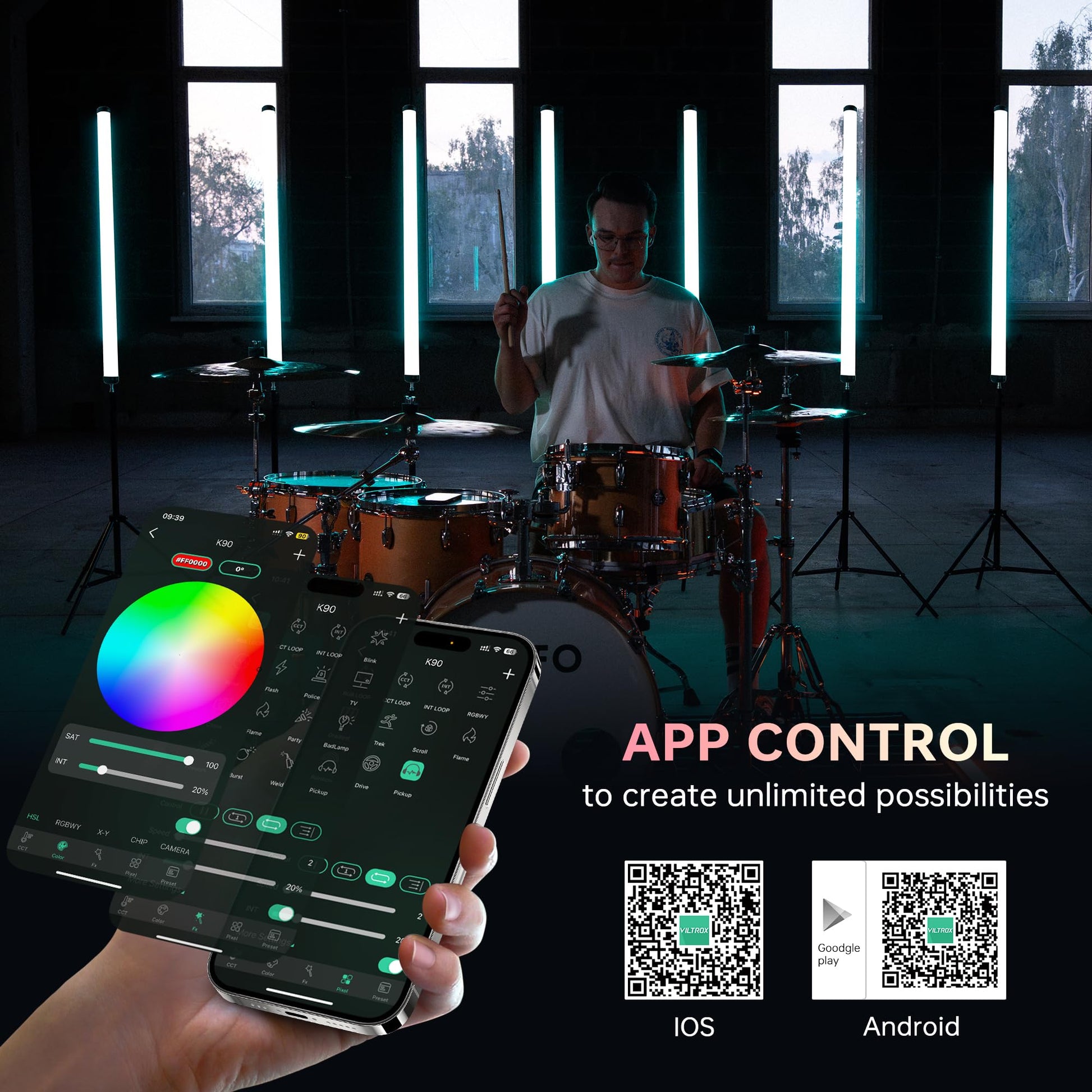 - 【Light Panel/Remote/App Control Video Light】Built-in 2.4G wireless system makes K90 light stick can wirelessly control and easily switch various modes via 'ViltroxLink” app, 'weeylite RC-11' remote control(NOT INCLUDED). Also the intuitive on body control with LCD display make the parameter adjustment more flawless and effective. Every detail is under your control!
