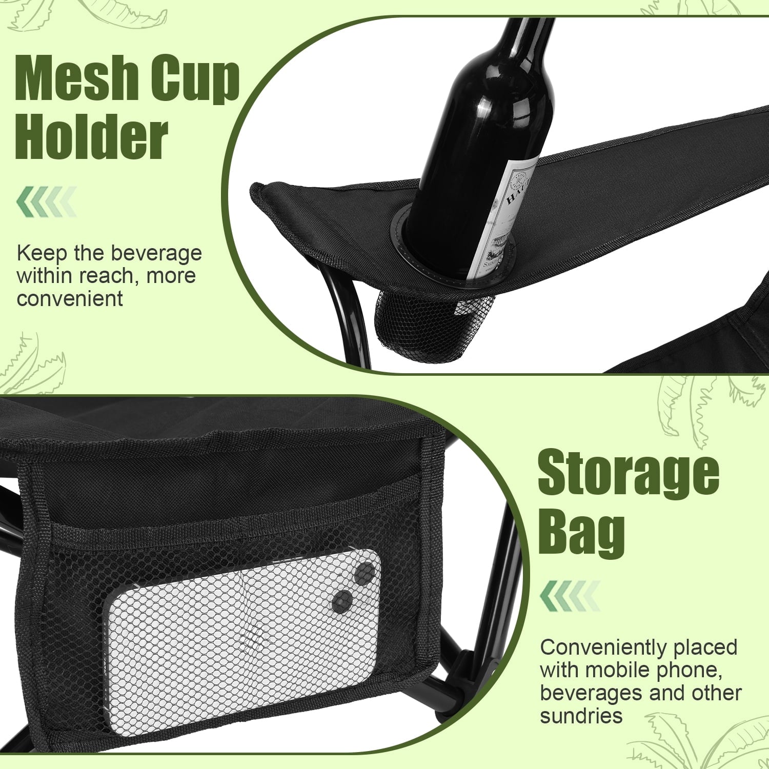 Convenient Accessories - Equipped with a cup holder and storage bag, this portable chair provides added convenience