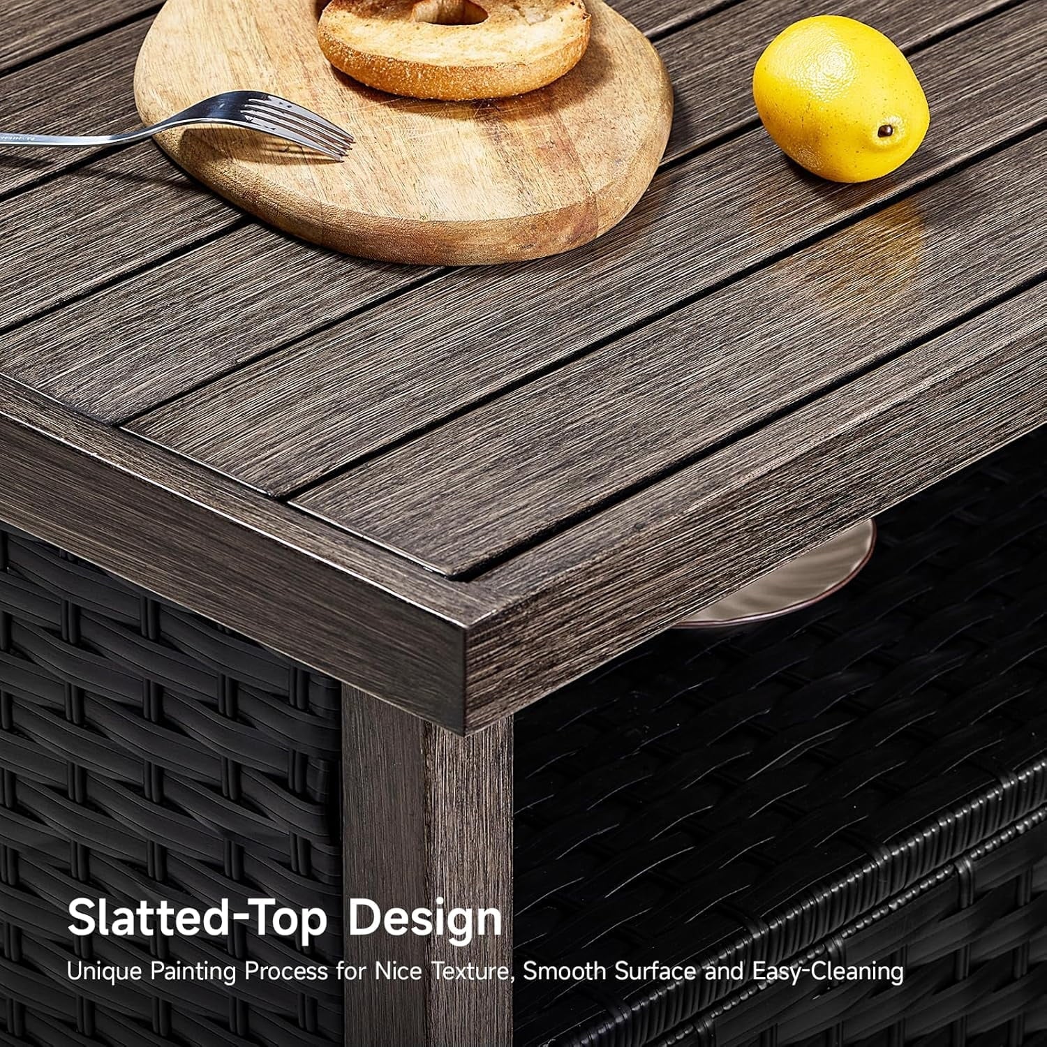 WANSHUN Outdoor Storage Cabinet, Woven Rattan Bar Table with 2 Doors, Slatted-Top, Wicker Console Table for Patio, Garden, Backyard, Kitchen - Black