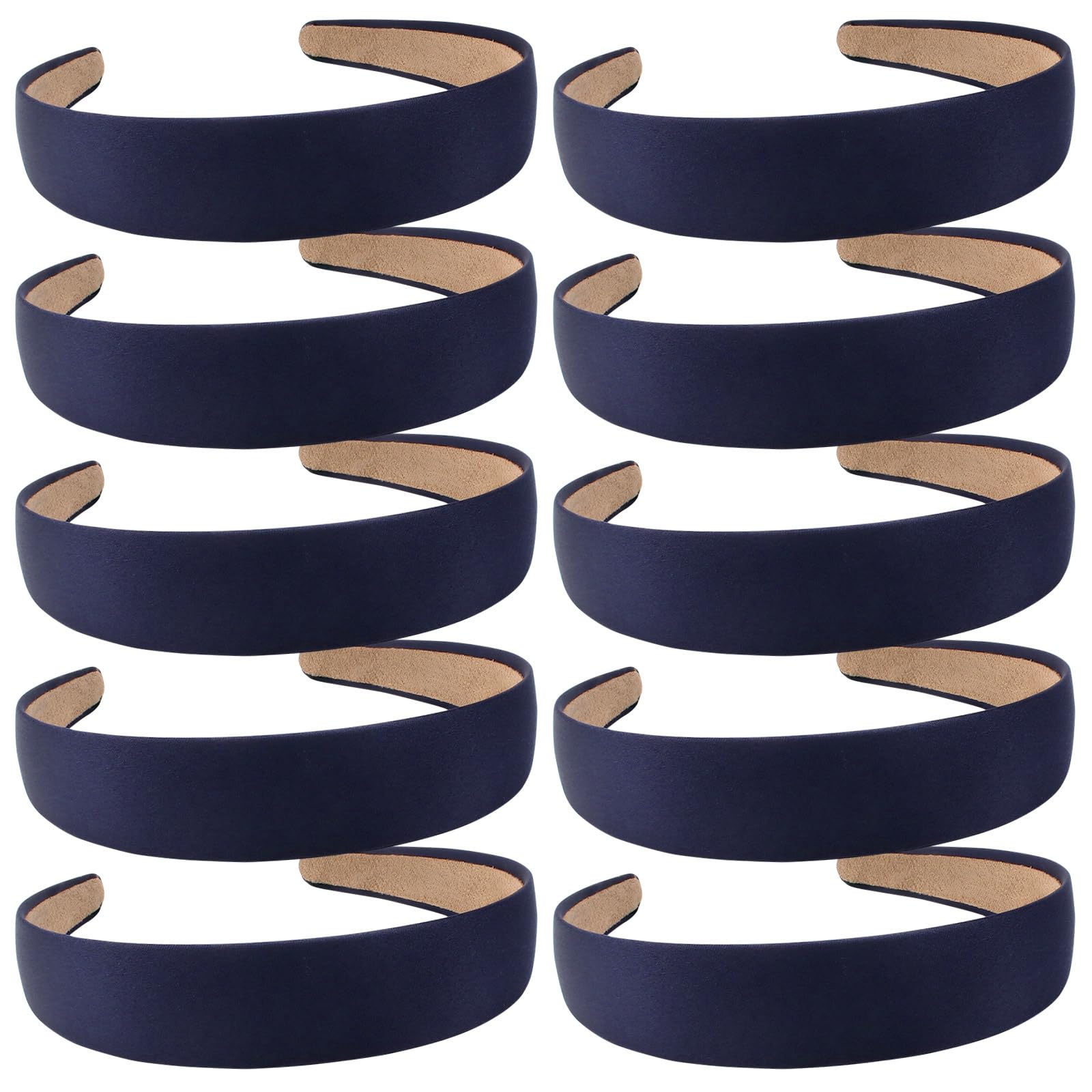 Wecoe Hairband, 10 Pack Satin Headbands 1.3 Inch Wide, Dark Navy Blue, for Women and Girls, Non Slip Fashion Hair Bands, DIY Holiday Hair Accessories