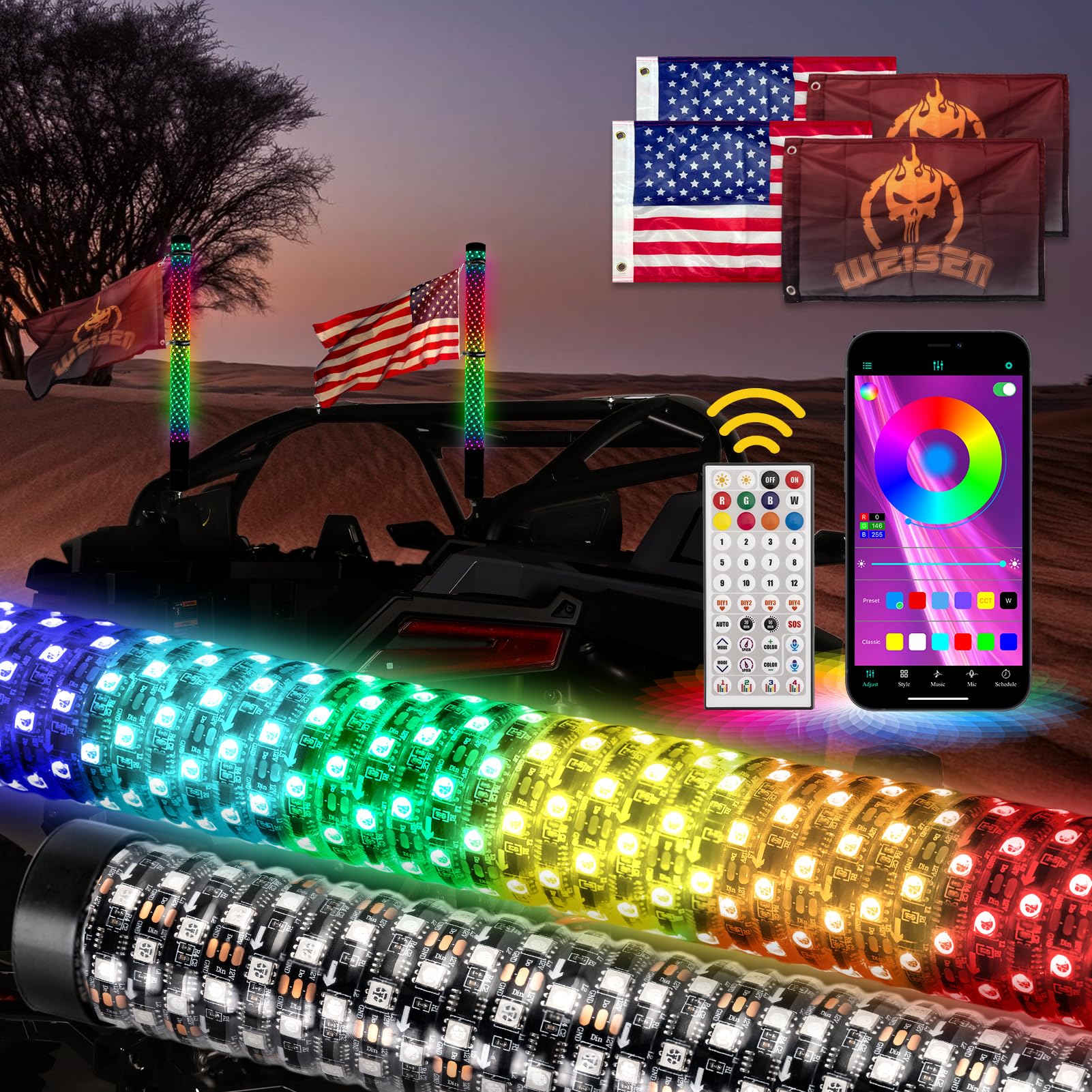 WeiSen 2PCS 3FT LED Whip Light w/Brake Turn Reverse Lights, RGB LED Antenna Spiral Light w/Plug & Play Adapter Compatible with Polaris RZR Maverick X3 UTV ATV Golf Cart Truck