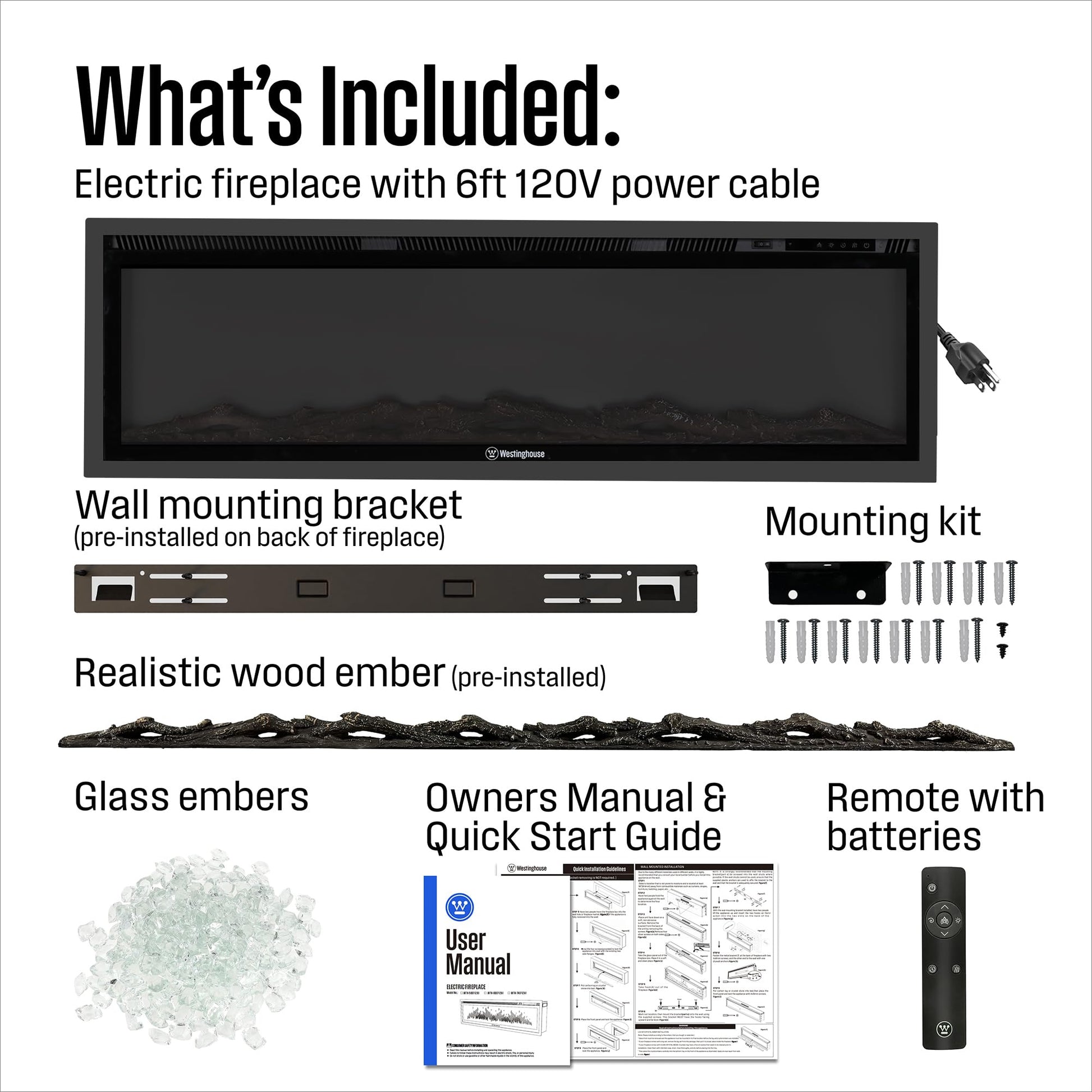 Westinghouse 60 Inch Electric Fireplace Heater, Compatible with Alexa & Google Home, Wall Mount or in-Wall Recessed Fireplace Insert, 24 Hour Timer, Color Changing Flames, 750W/1500W Indoor Heater