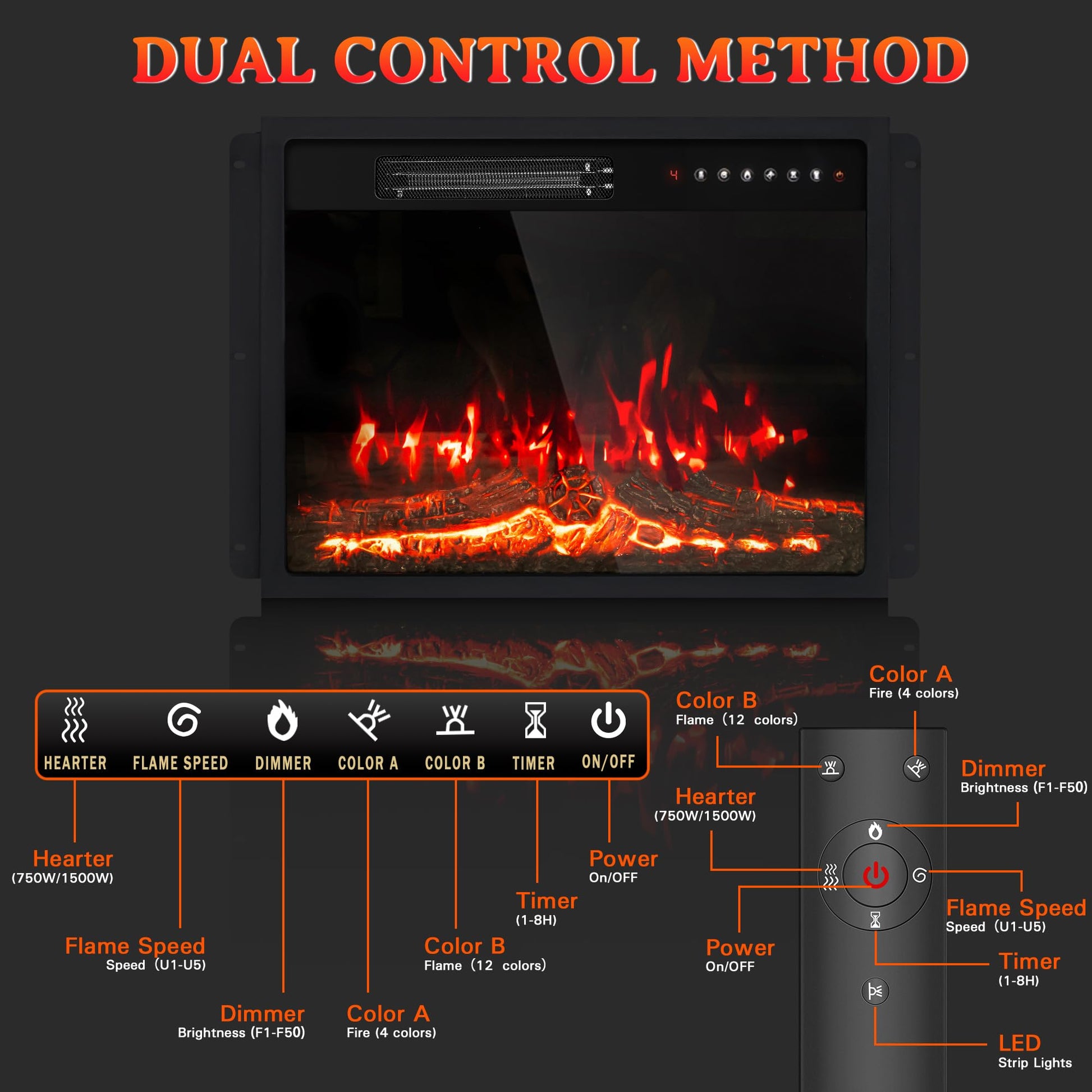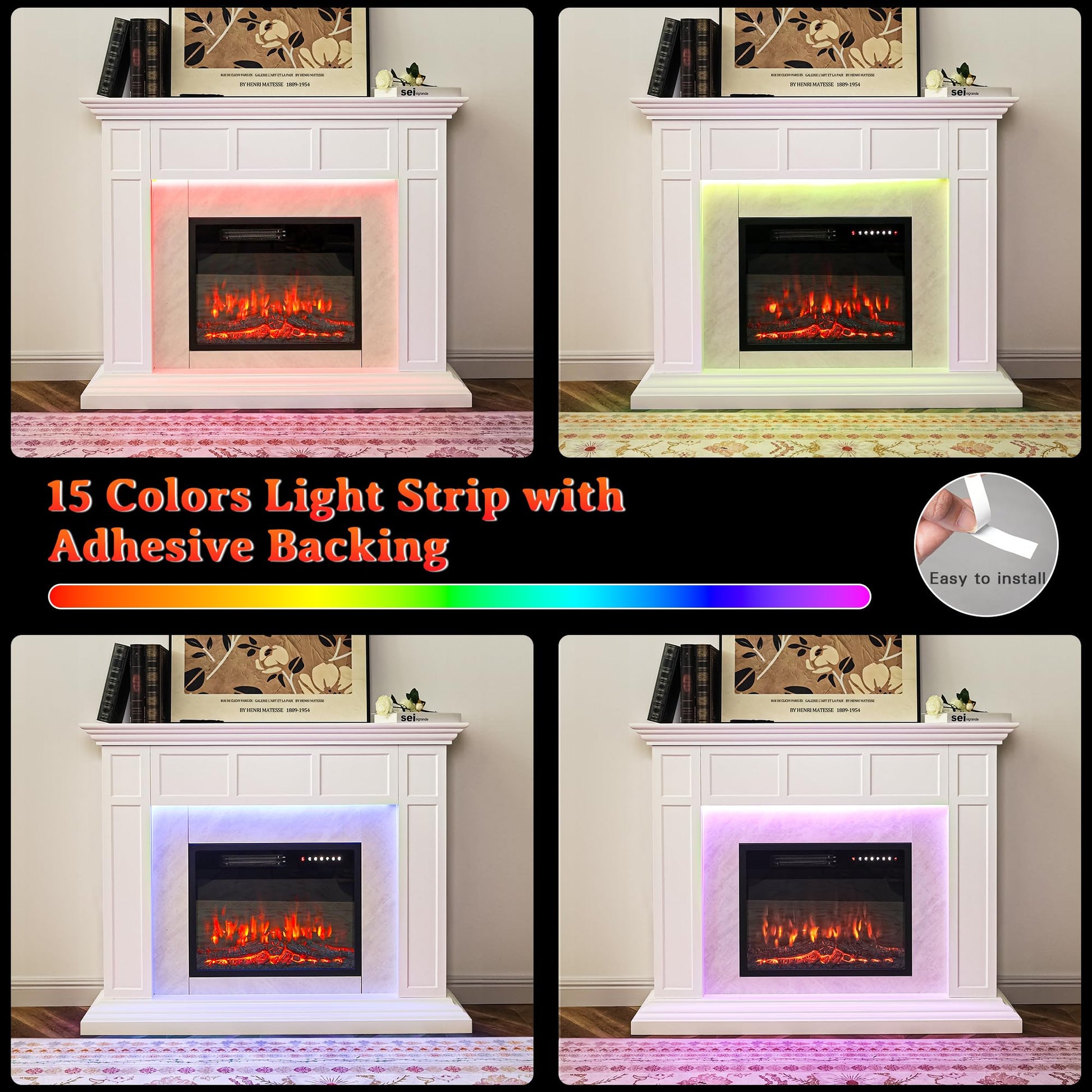 - Dimensions and Flame effects: mantel dimensions: 50 '(W) X 11' (D) X 39 '(H); electric fireplaces dimensions: 23 '(W) X 5' (D) X 18 '(H) LED lighting is combined with realistic flame effects to create the ideal home atmosphere with 13 vibrant LED color choices and 12 realistic 3D flame simulations. Whether you are looking for a warm and intimate environment or a lively and bright environment, this beige gray mantel can provide lighting effects adapted to your personal preferences. The ornate dance flame not only adds a decorative touch to your room, but also acts as a stand-alone fireplace heater for warmth and comfort.