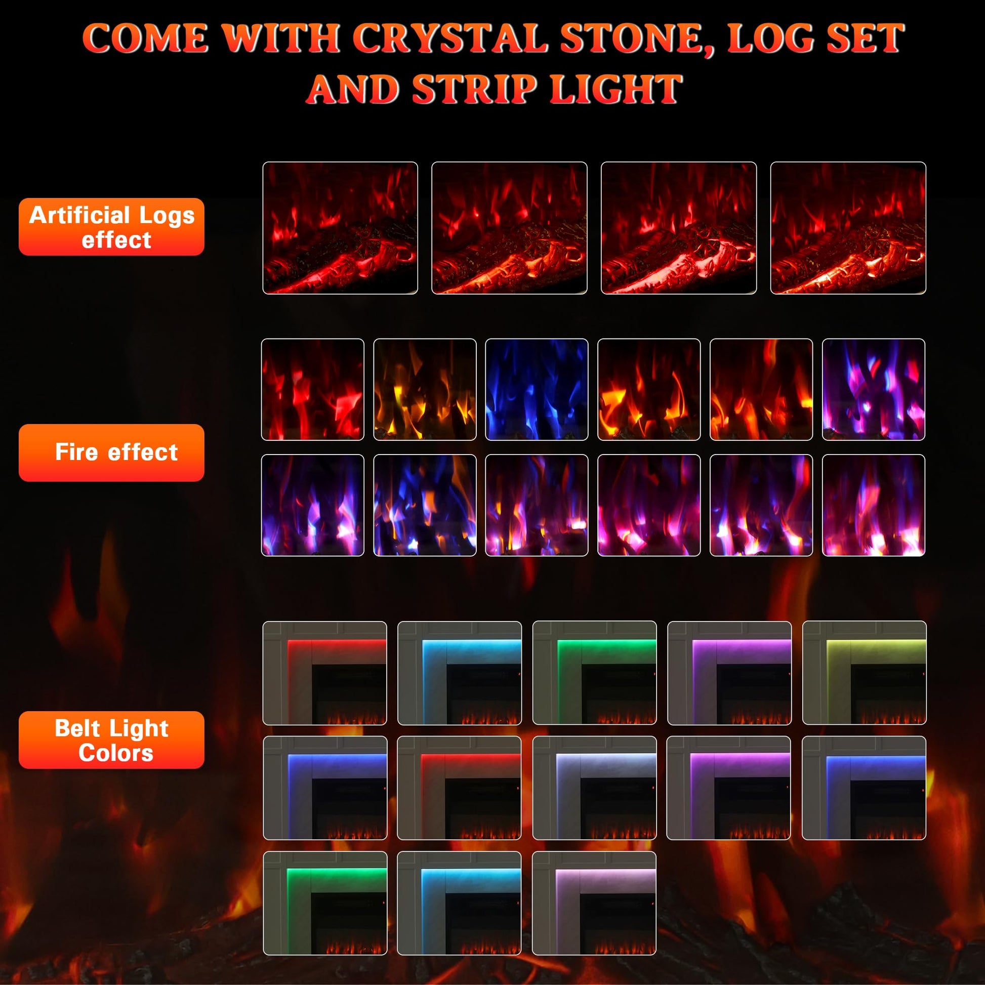 - Quiet and safe use: This real flame electric fireplace with mantel has overheat protection to ensure safe and reliable use. Once the internal temperature of the fireplace rises beyond the safe range, the overheat protection device will automatically cut off the power of the fireplace, thereby quickly and effectively preventing further temperature rise. At the same time, the noise reduction process is adopted, which can effectively reduce the noise during the heating process.