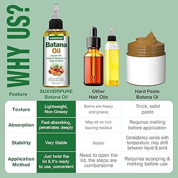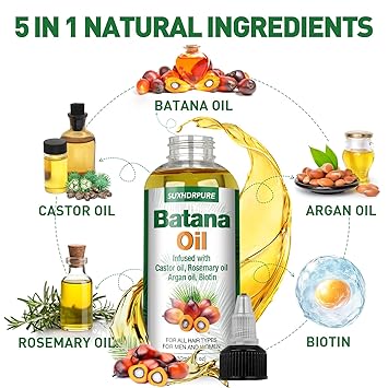 - 100% Pure & Organic Batana Oil from Honduras: SUXHDRPURE's Cold-pressed, unrefined Batana Oil sourced directly from Honduras. This traditional oil is naturally rich in fatty acids and Vitamin E, making it ideal for hair and skin care routines.